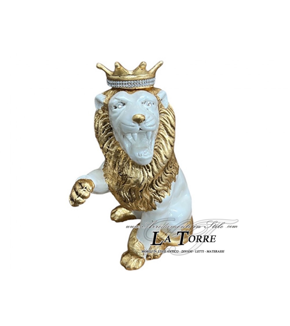 Ceramic animals statue sculpture Lion paw crown open mouth pearly white gold leaf swarovski h25 cm PR63