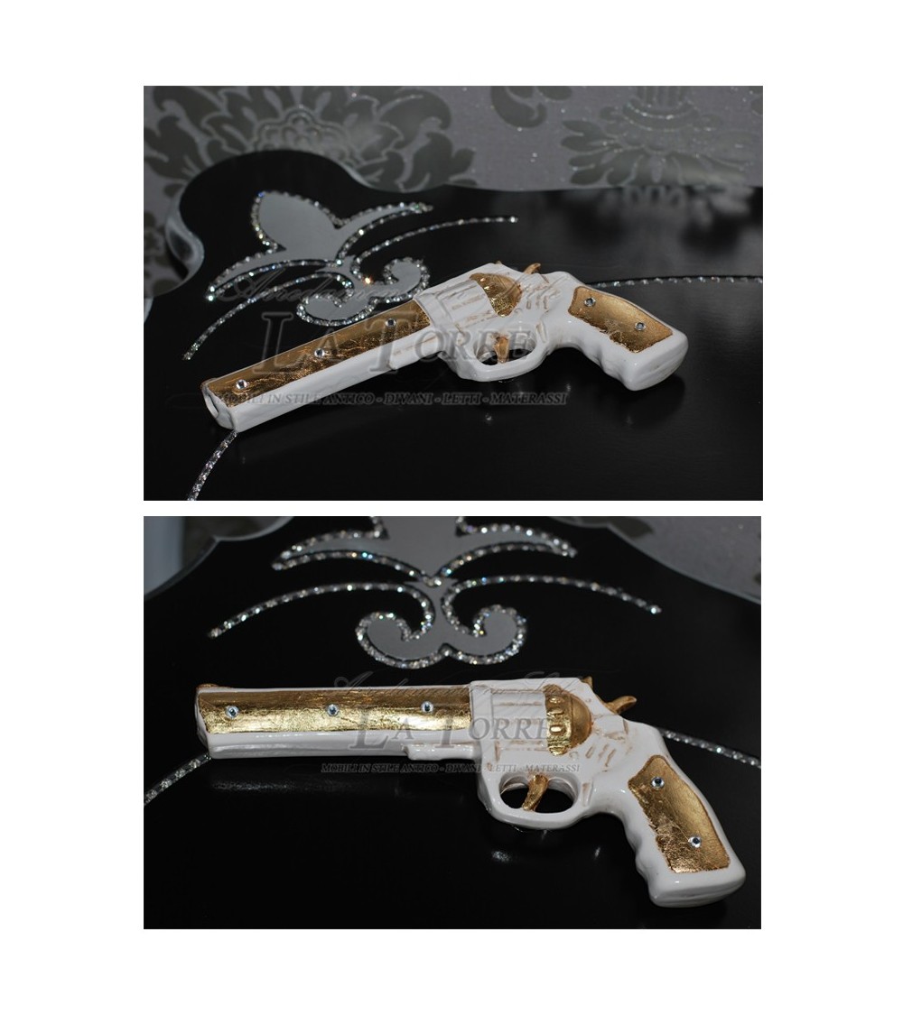 Revolver drum pistol weapon in Ivory and Gold ceramic with Swarovski PR33