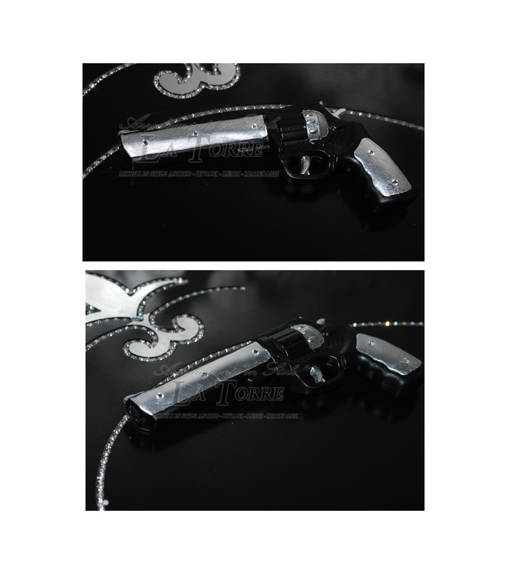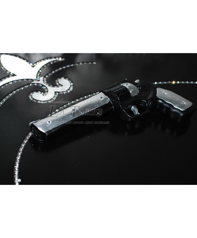 Ceramic Revolver Drum Pistol Silver and Black with Swarovski PR33