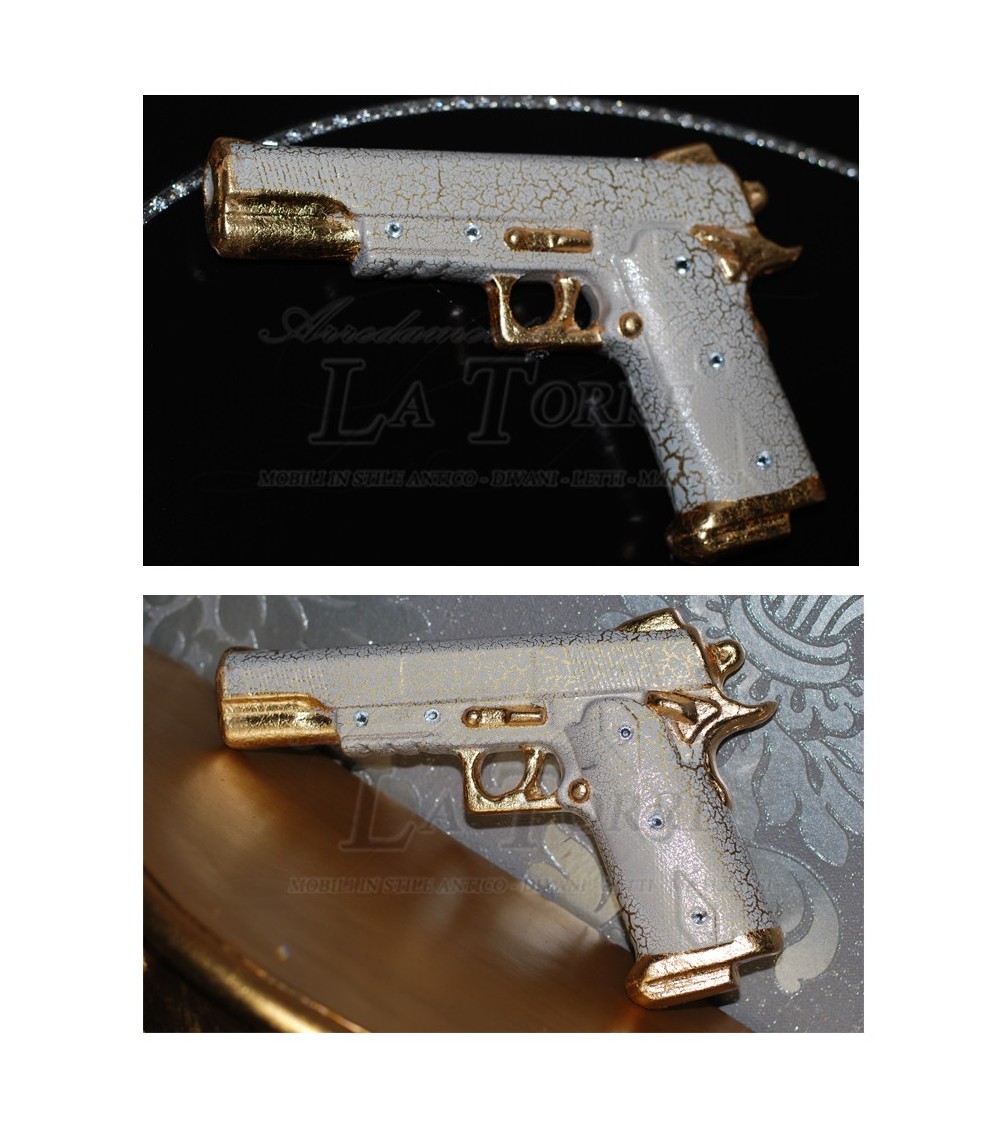 Beretta pistol weapon in crackle ceramic and gold swarovski 9x21 ornament PR33