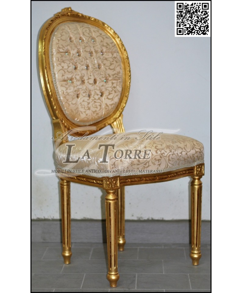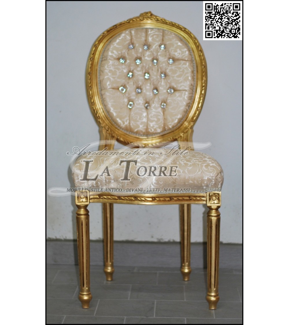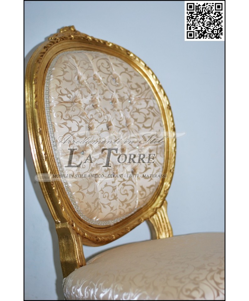 Baroque Cordelia armchair chair Louis XV gold ivory damask fabric Swarovski AR5458