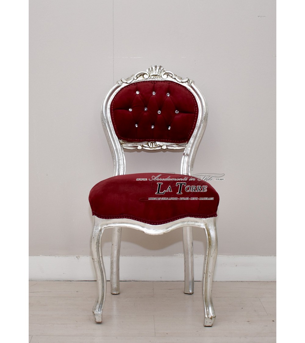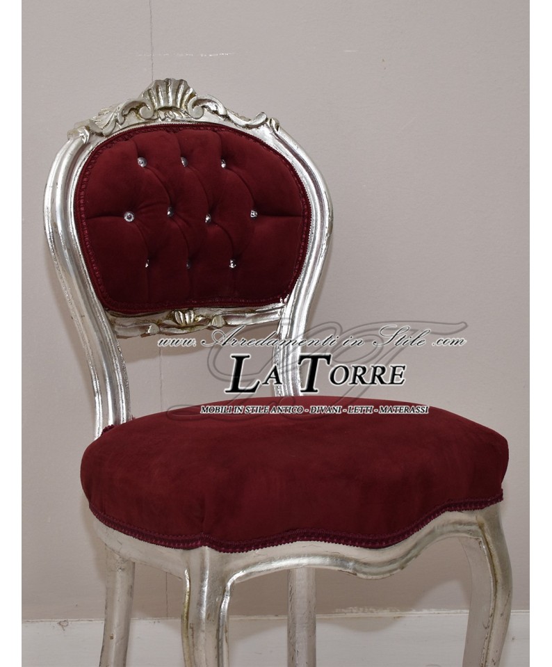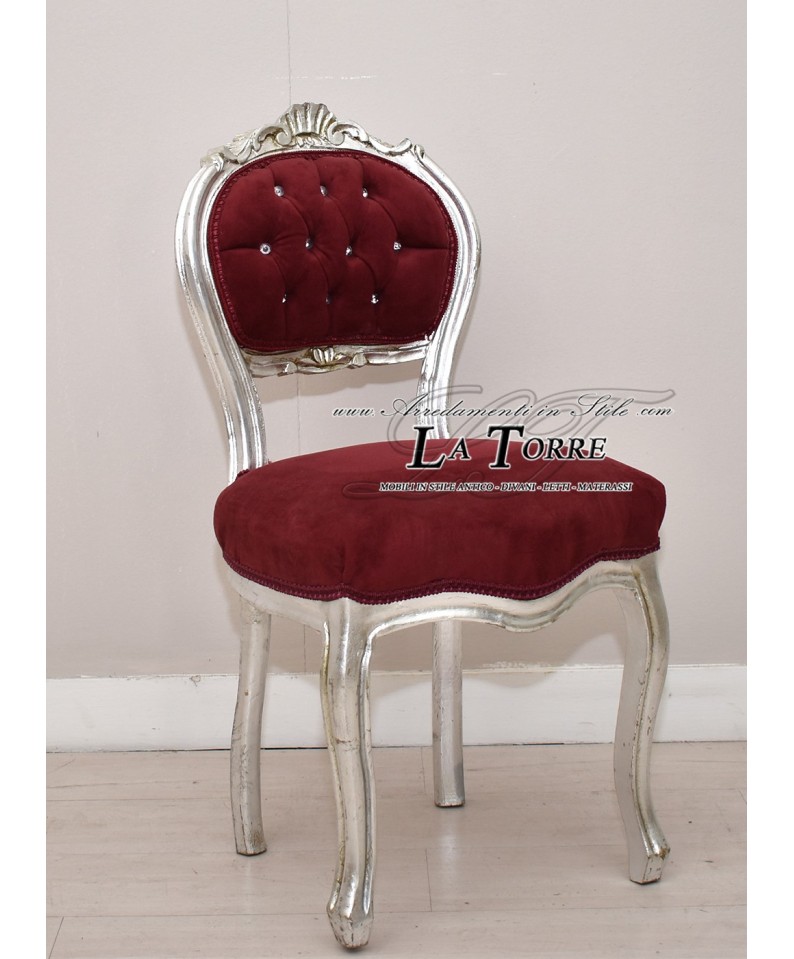 Louis XV chair music chair solid wood silver leaf red velvet k90