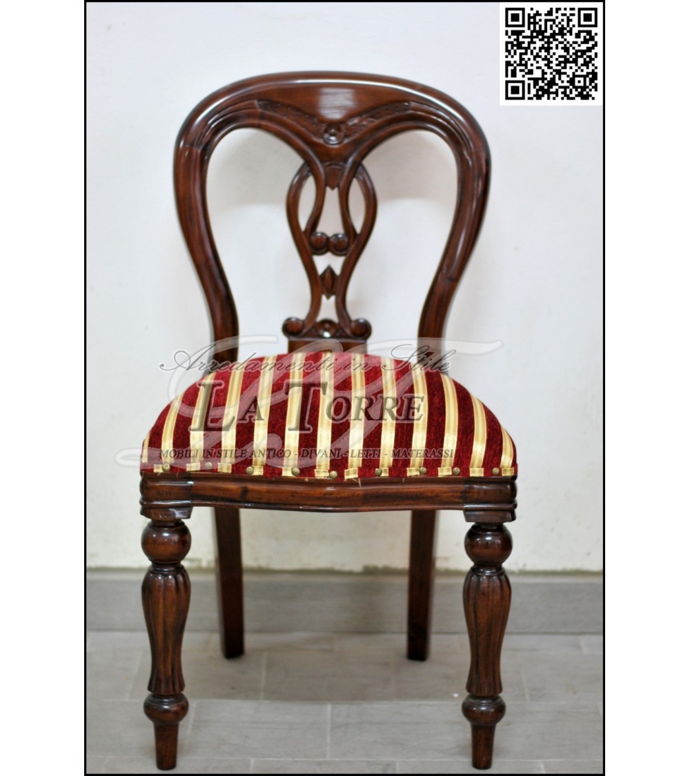Lisbon Louis Philippe armchair chair in walnut wood and red striped fabric AL4006