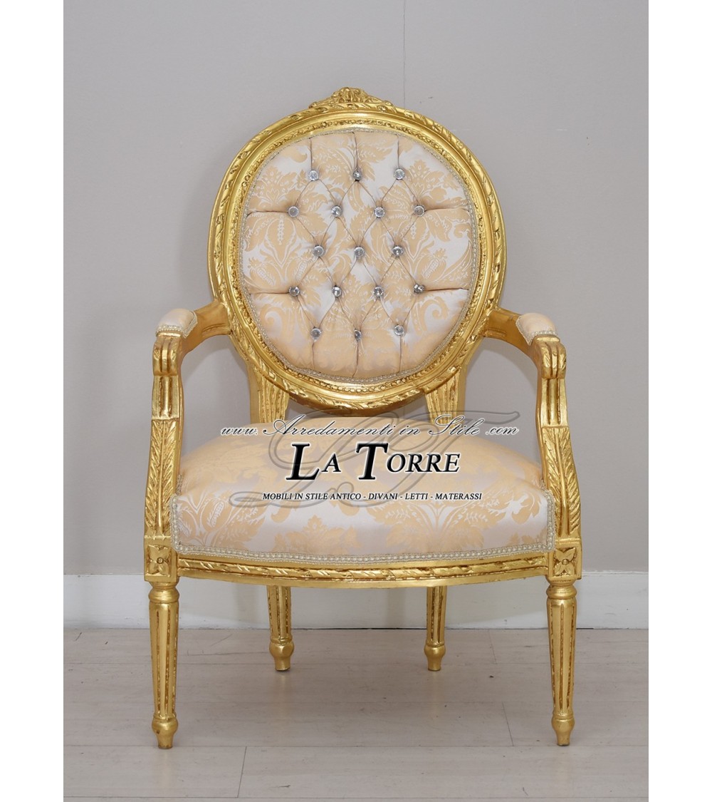 Baroque Cordelia armchair Louis XV chair armrests Swarovski ivory damask fabric Ar5457