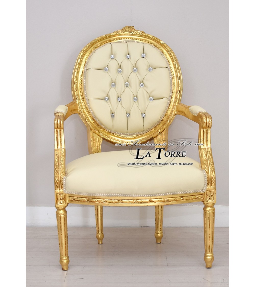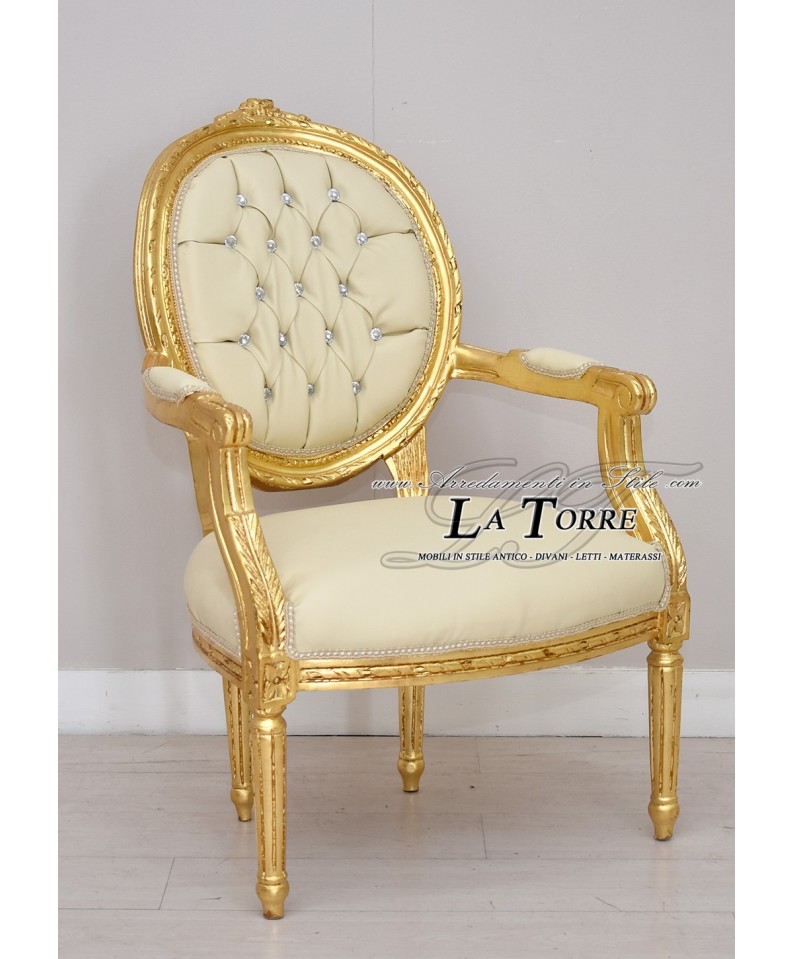 Cordelia baroque armchair Louis XV chair armrests ivory eco-leather fabric Swarovski Ar5457