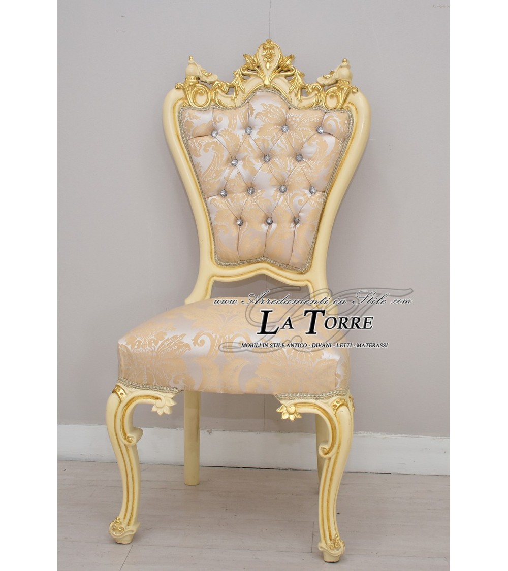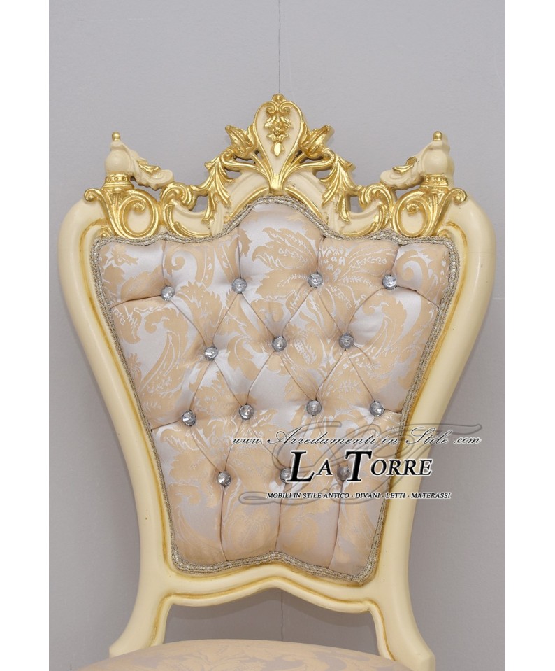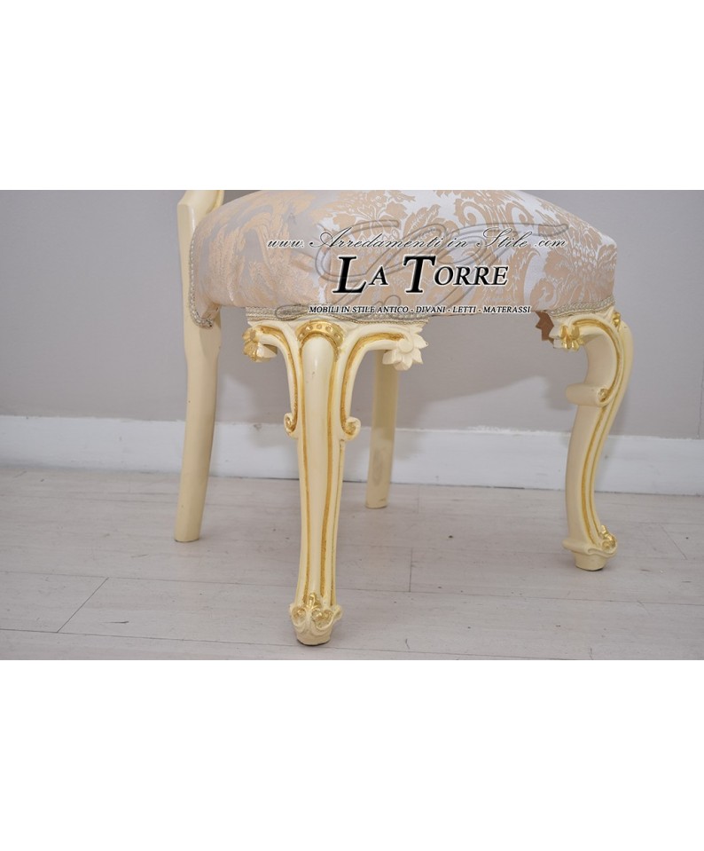 Chair Armchair Moon Louis XV Baroque Empire gold beige damask fabric MA5053