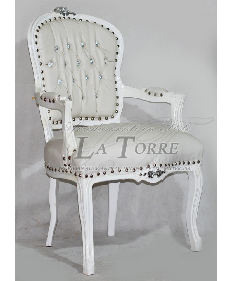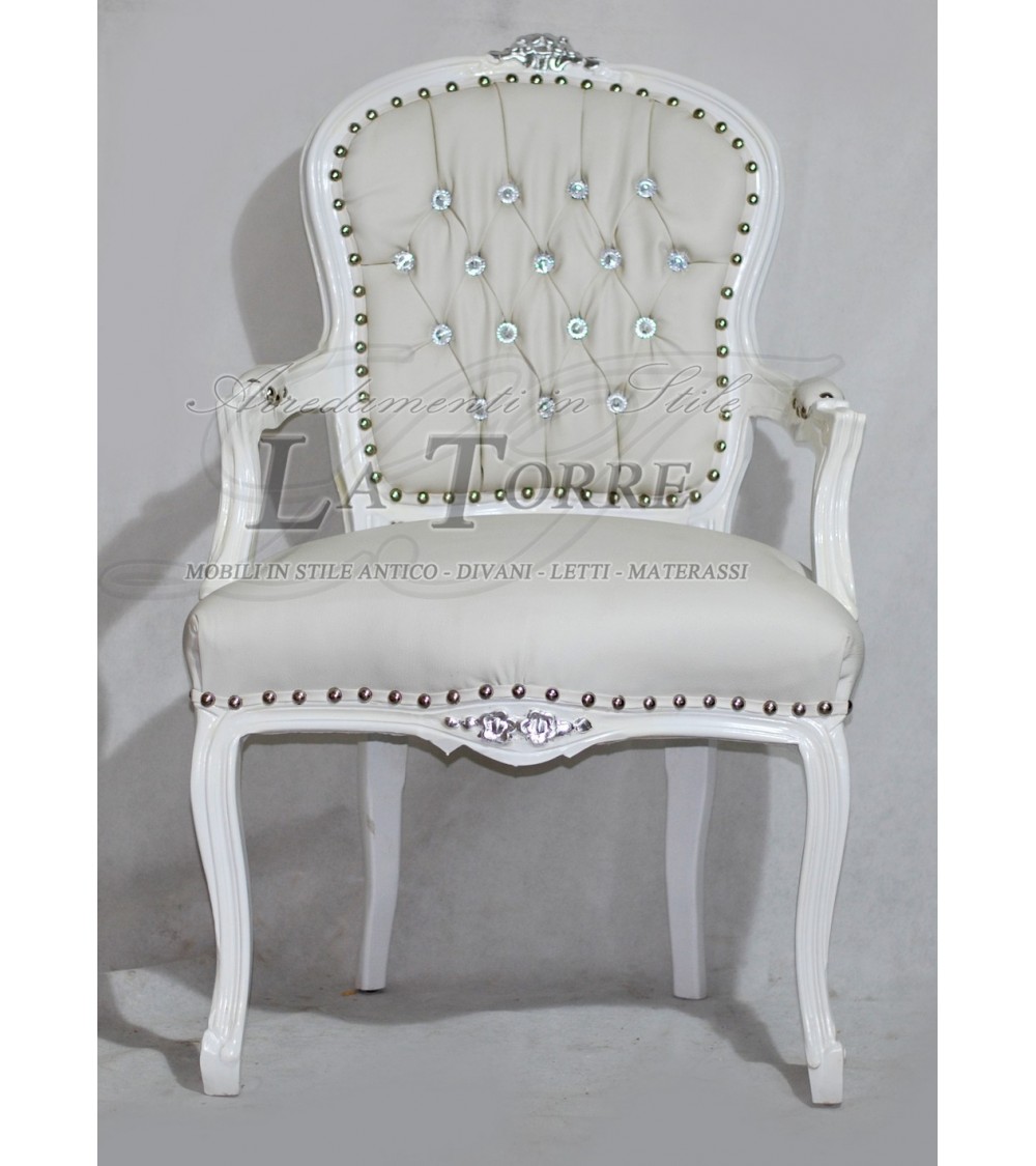 Louis XV baroque white faux leather armchair futè armchair AR1114
