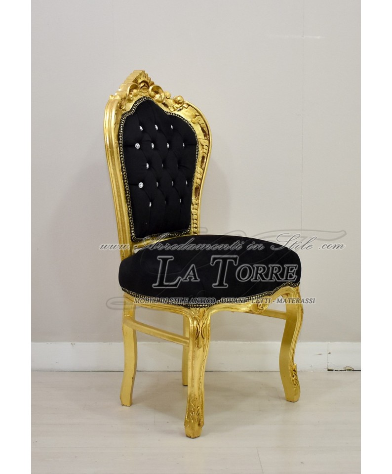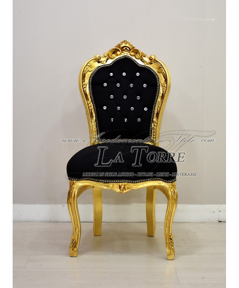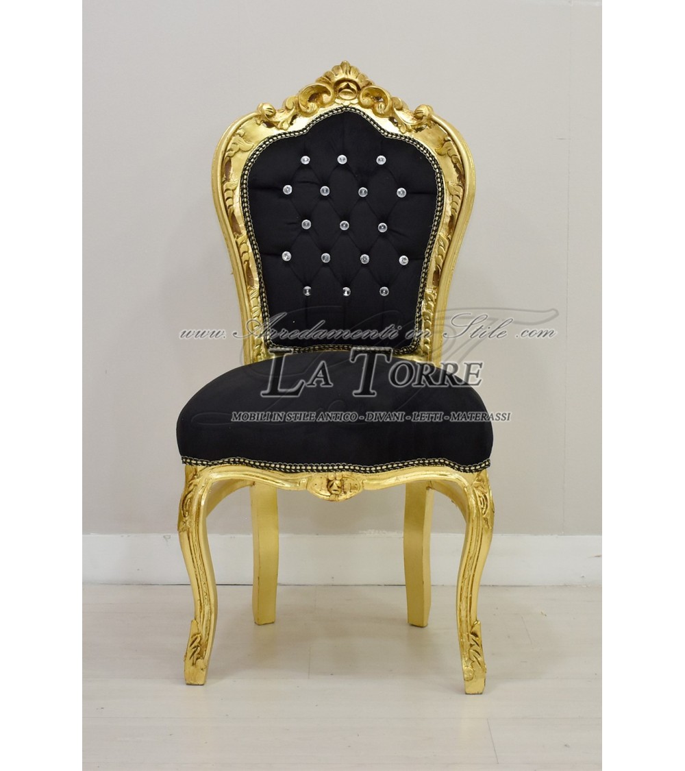 Still Louis XV Baroque Armchair Wood Gold black velvet swarovski AL1826