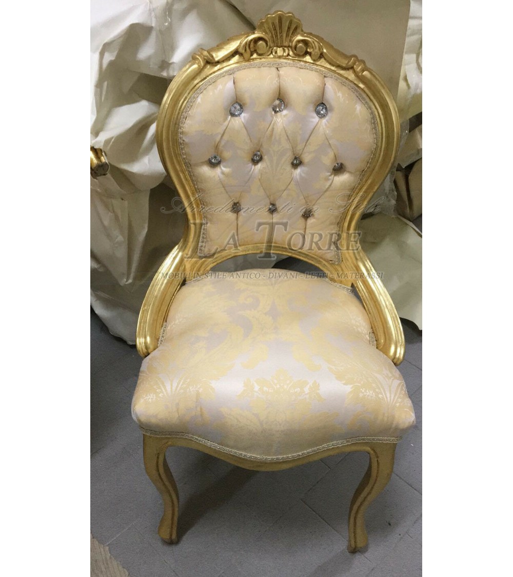Louis XV chair Gold wood chair Swarovski damask fabric AR012