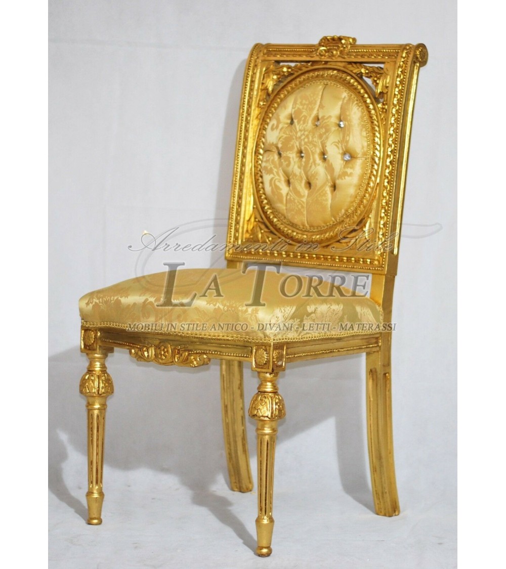 Evelyn armchair Louis XV gold leaf damask fabric Swarovski AR5152