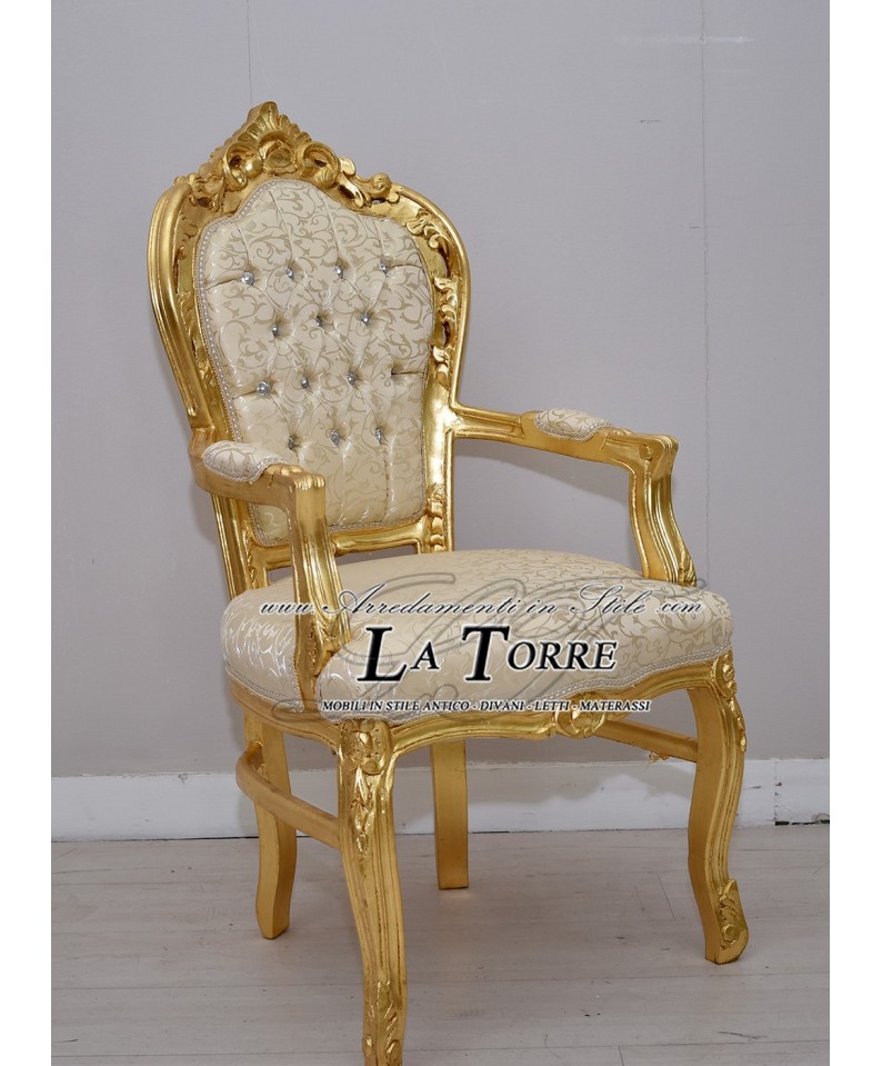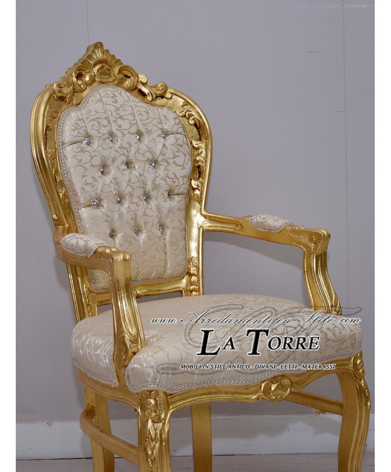 Chair Armchair Still Louis XV Baroque Empire gold ivory virginia fabric AL2729