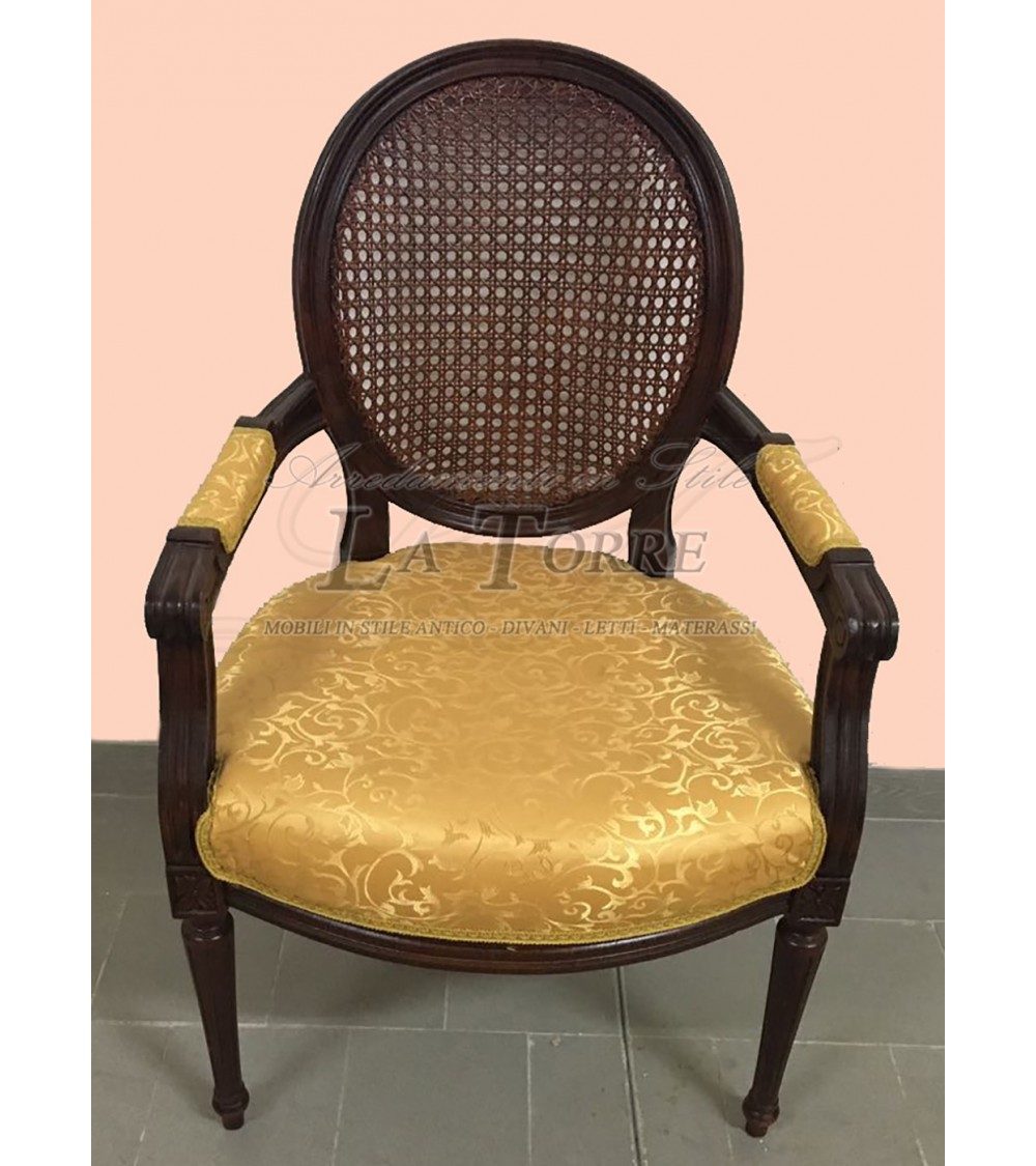 Baroque Cordelia armchair Louis XV chair armrests walnut with gold damask fabric Ar5457