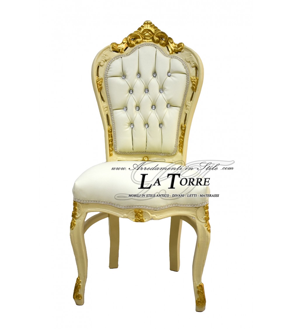 Armchair Still Louis XV Chair Ivory wood and gold eco-leather Swarovski AL1826