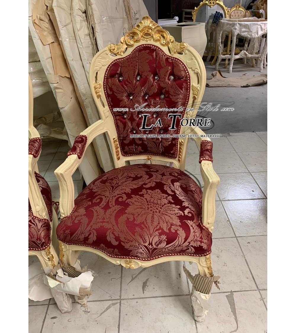 Still Armchair Louis XV Baroque Empire ivory burgundy damask fabric AL2729