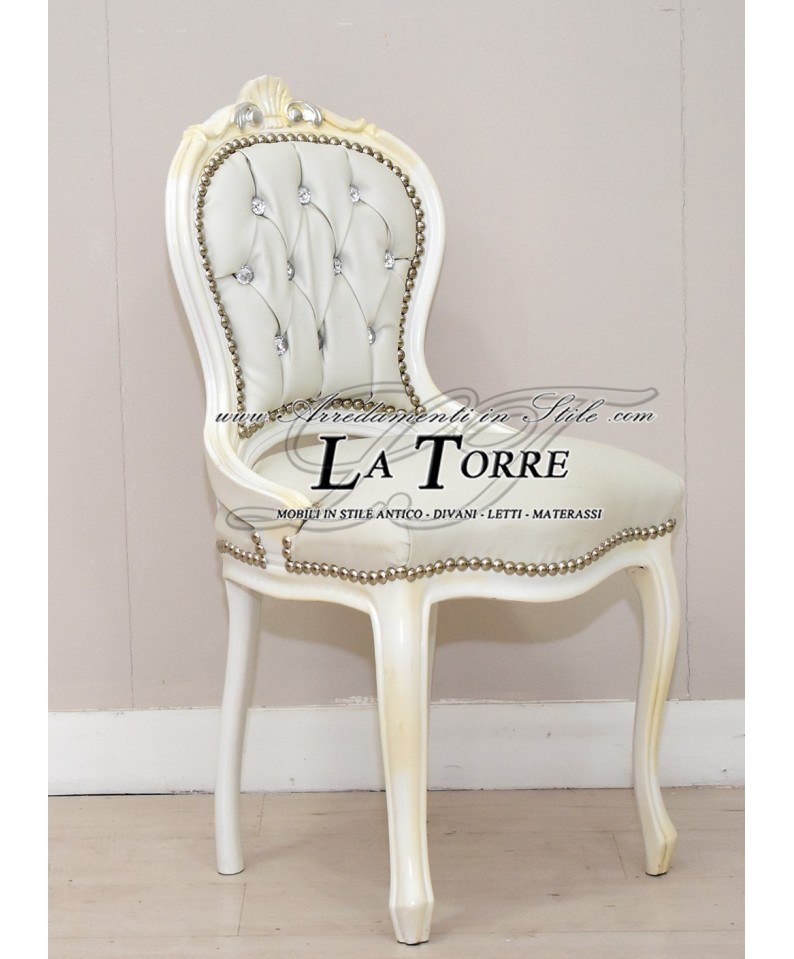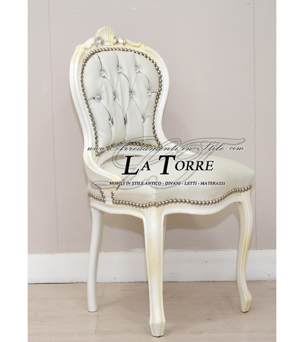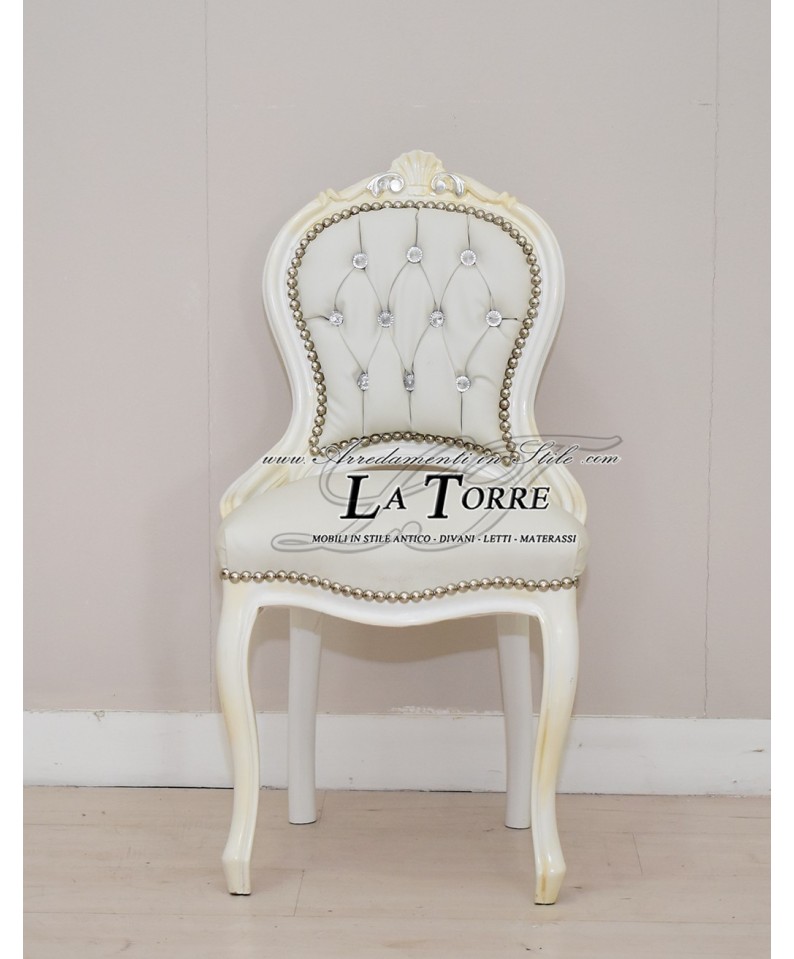 Louis XV chair white wood silver eco-leather Swarovski AR012