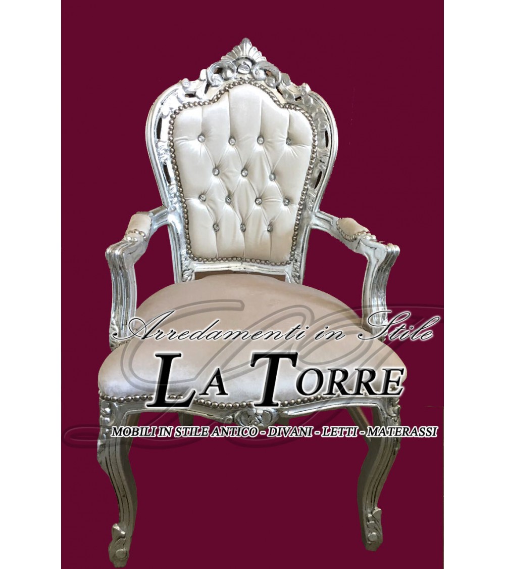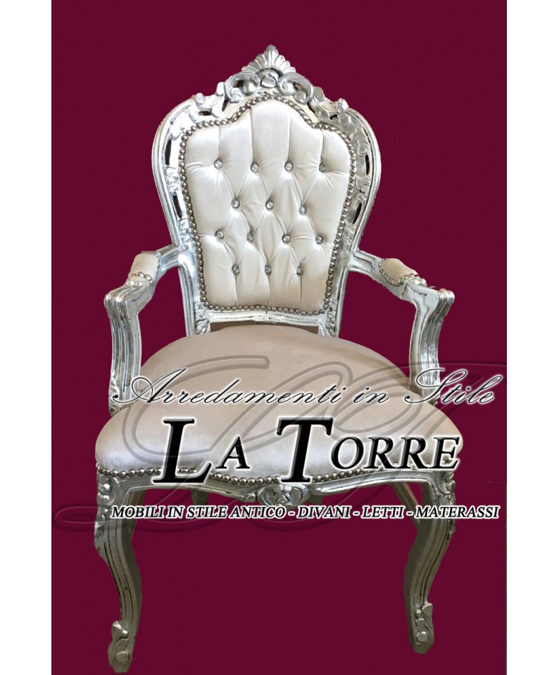 Armchair Still Louis XV Baroque Empire silver white velvet AL2729