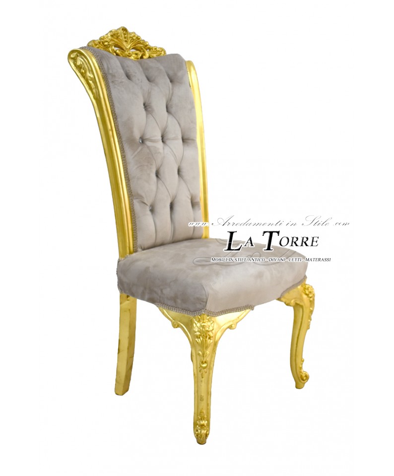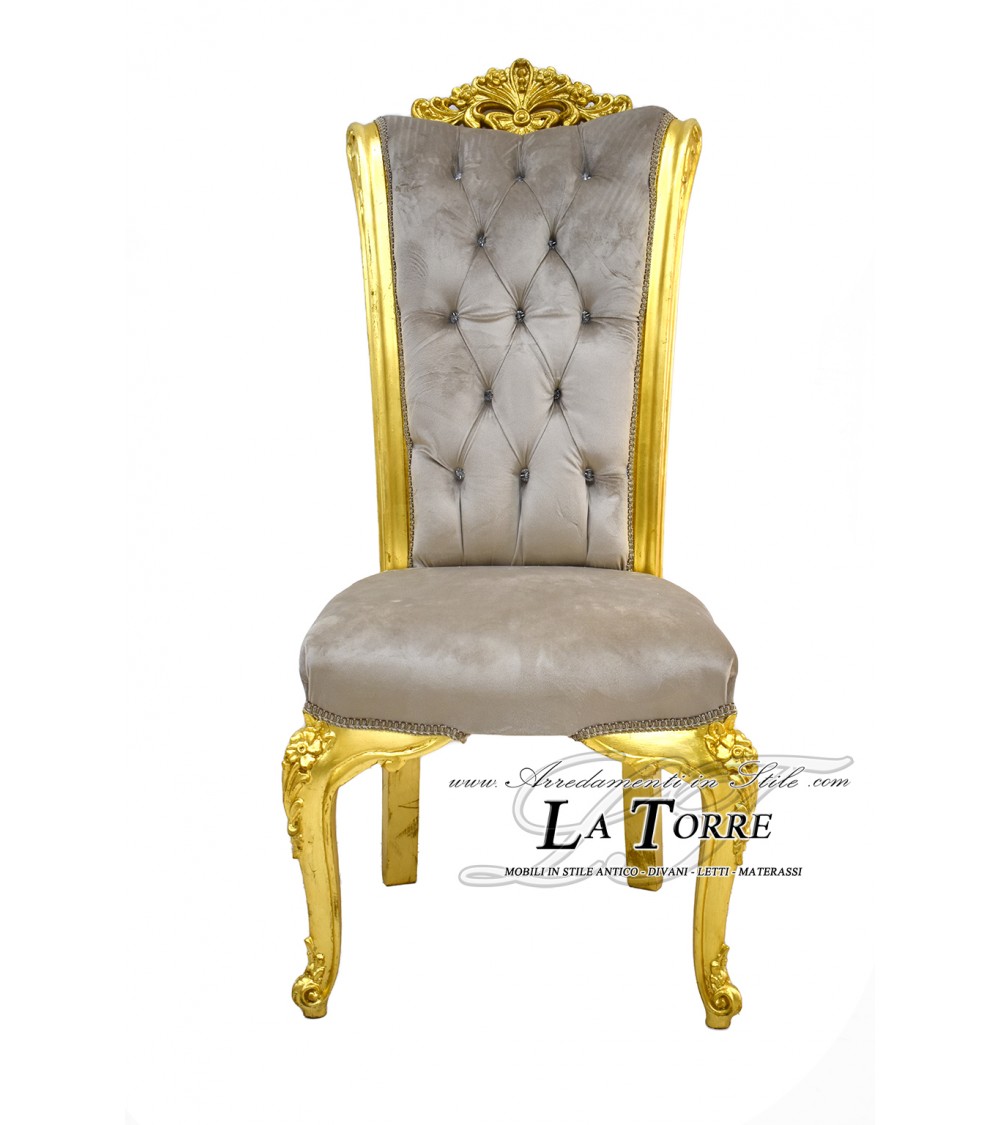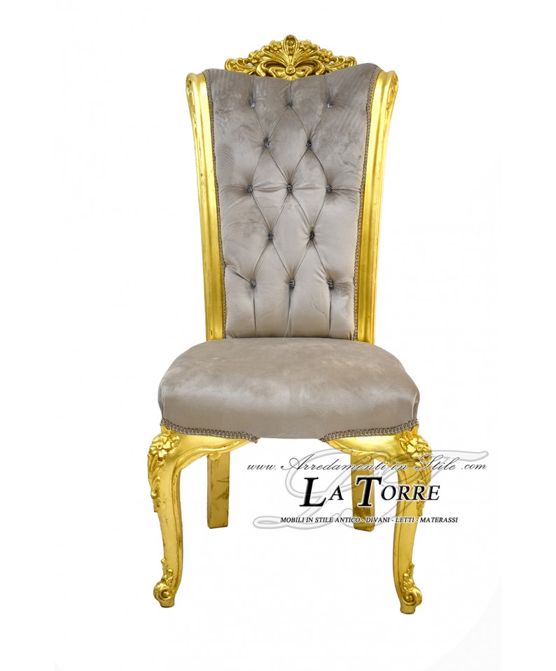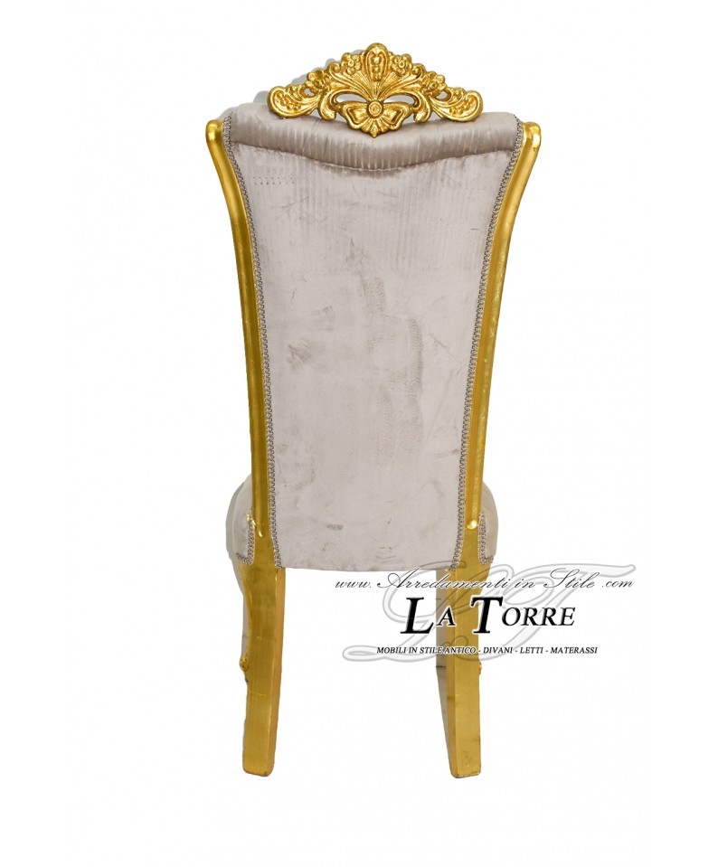 Chair Armchair Queen Elizabeth Louis XV Baroque Empire gold velvet dove gray LT3025