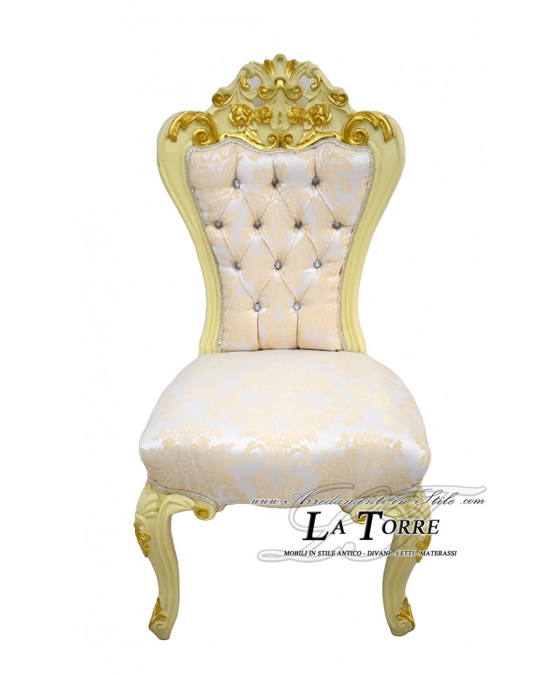 Armchair Carmen Louis XV Baroque Empire ivory and gold beige damask fabric MA5054