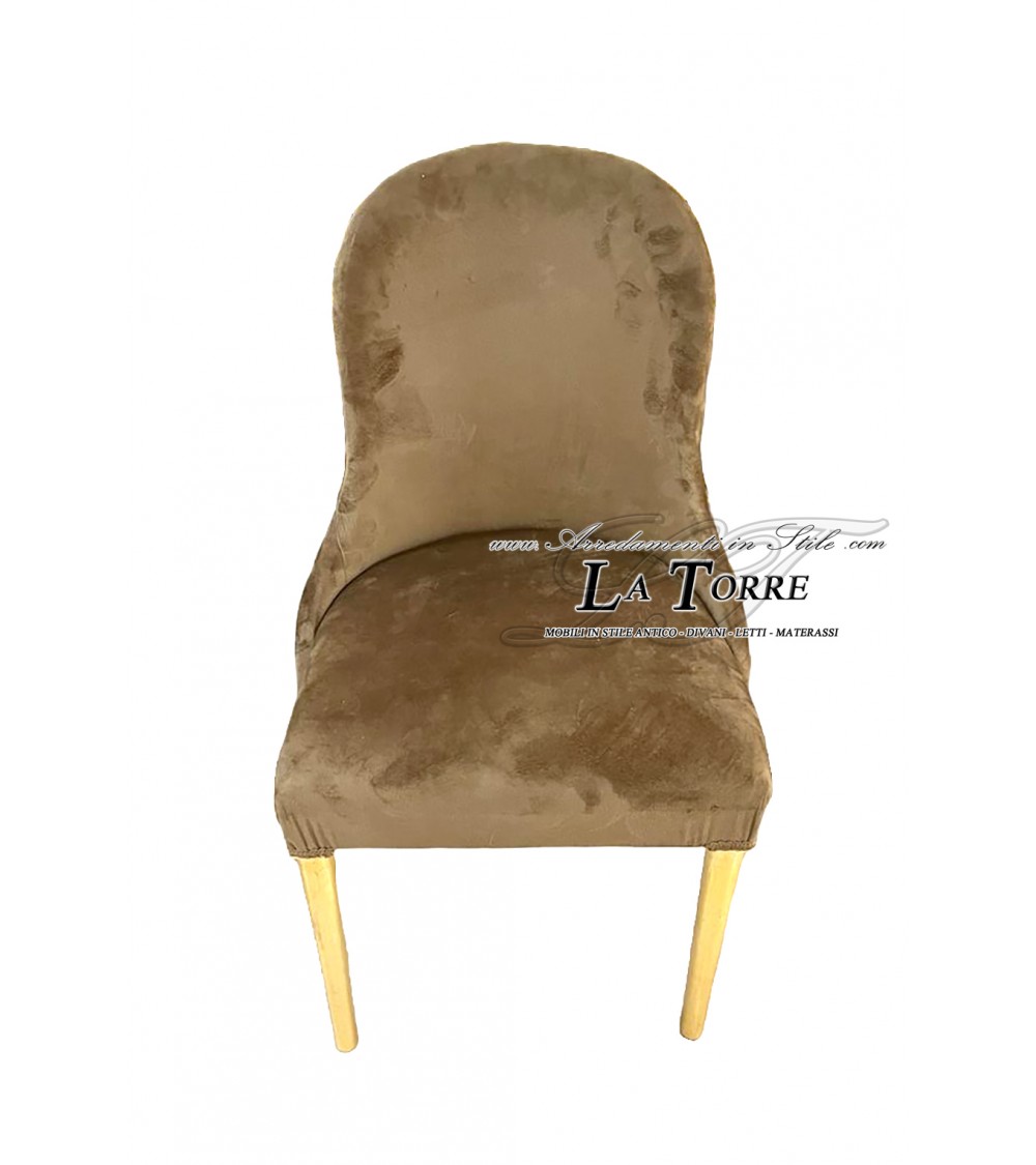 Contemporary classic armchair chair in brown velvet with gold wooden legs LT3026