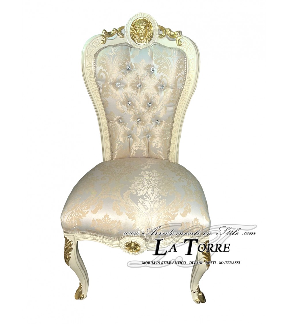 Armchair Goddess Louis XV Baroque Empire Ivory with gold details eco-leather Florentine lily LT3019