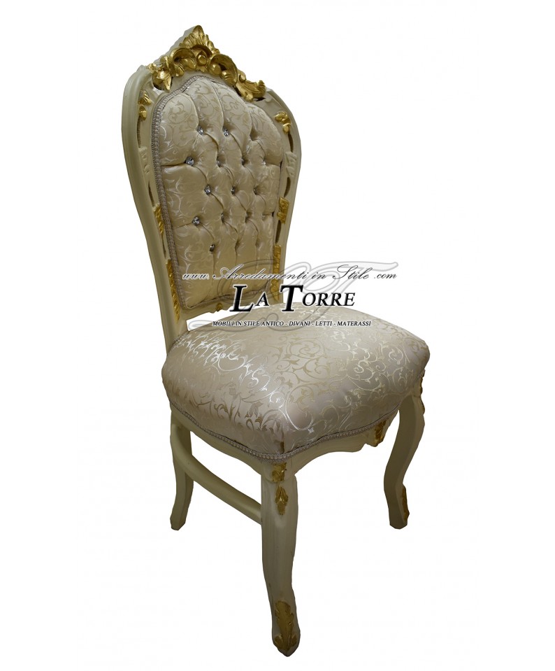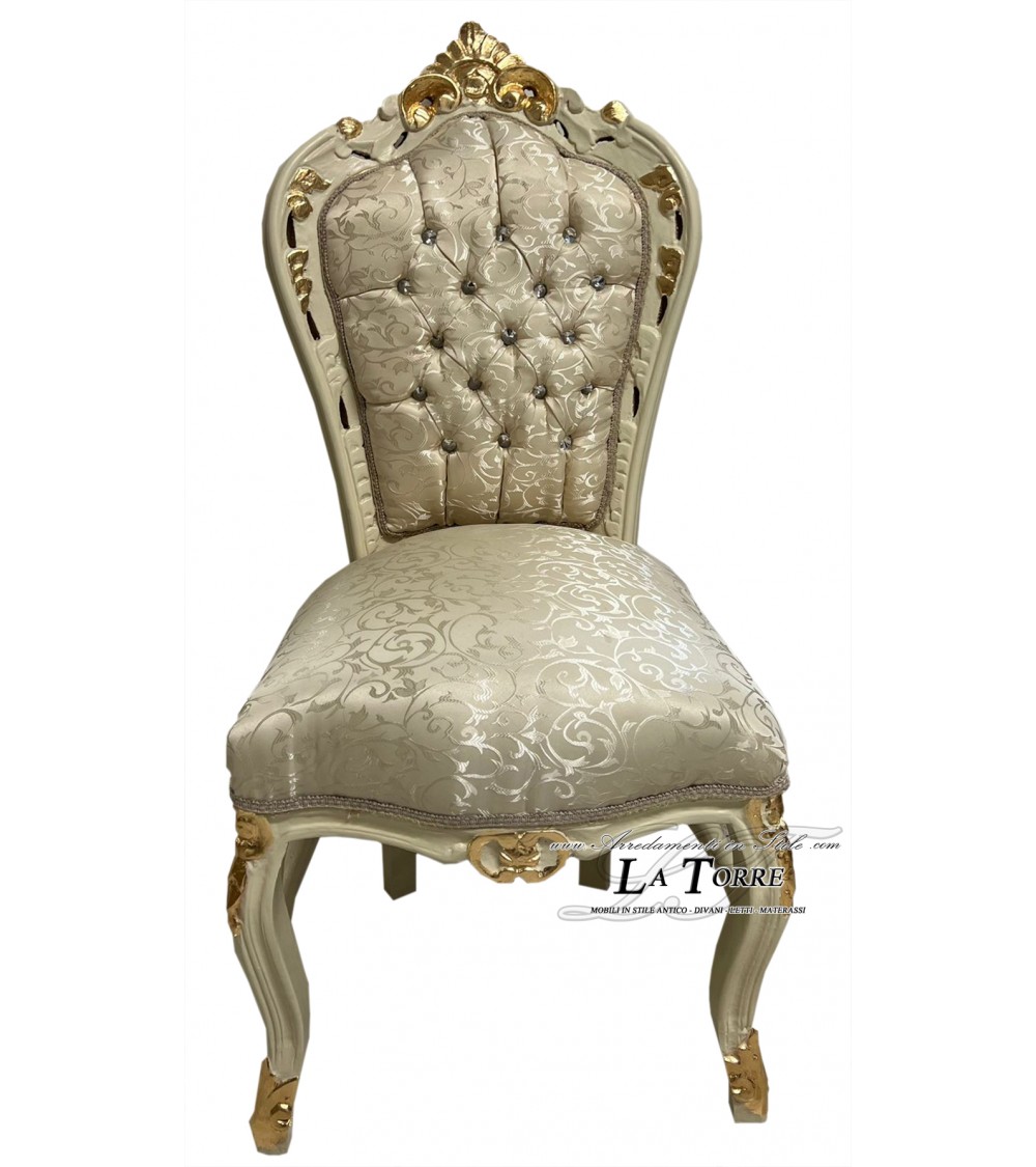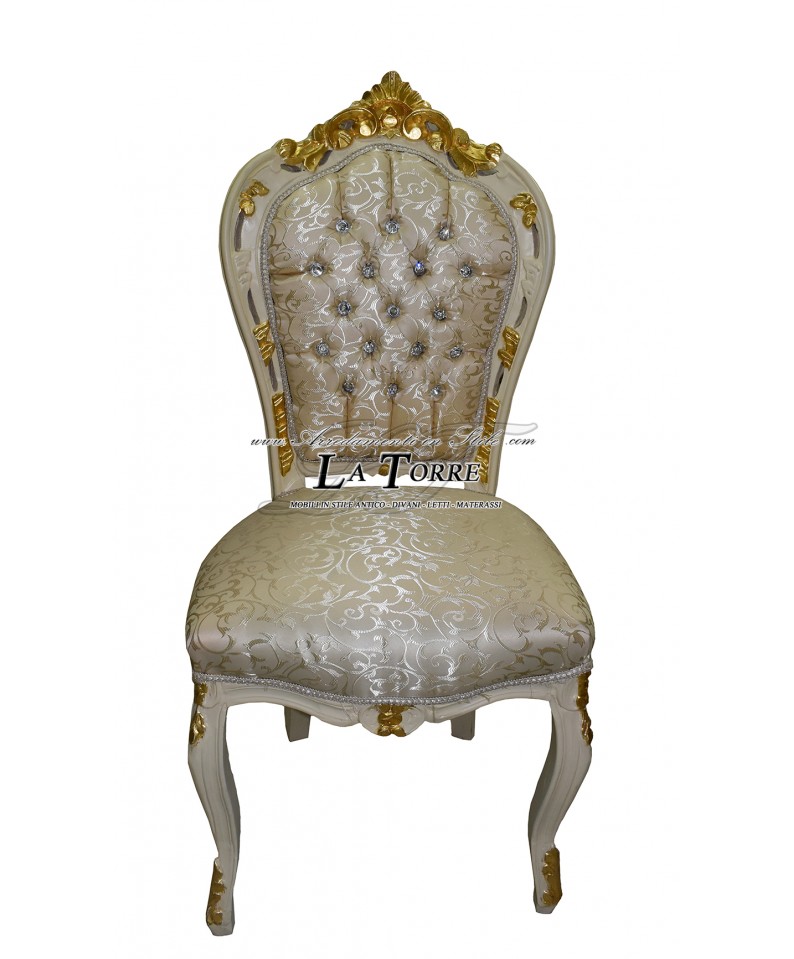 Baroque Still Armchair Chair Louis XV ivory wood and gold fabric virginia champagne swarovski AL1826
