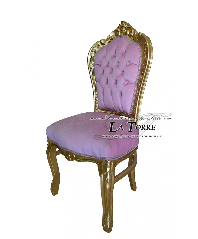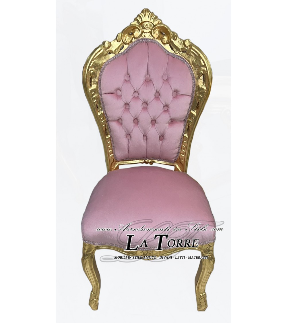 Armchair Still Chair Louis XV Baroque Wood Gold Pink Velvet Swarovski AL1826