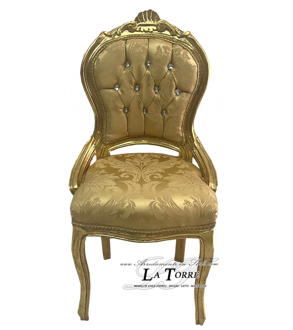 Louis XV Chair Gold Wood Gold Lily Fabric Swarovski AR012