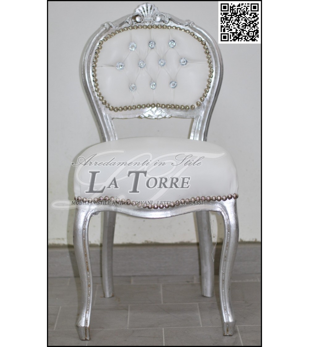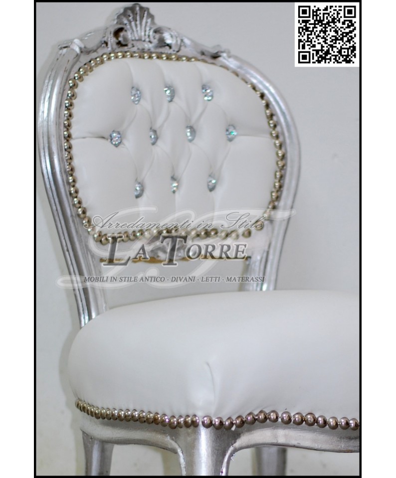 Louis XV chair music chair wood swarovski silver white eco-leather k90