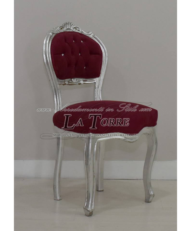 Louis XV Chair Music Chair Solid Wood Silver Leaf Burgundy Velvet K90