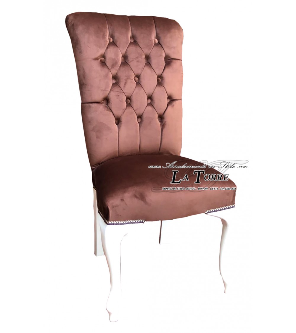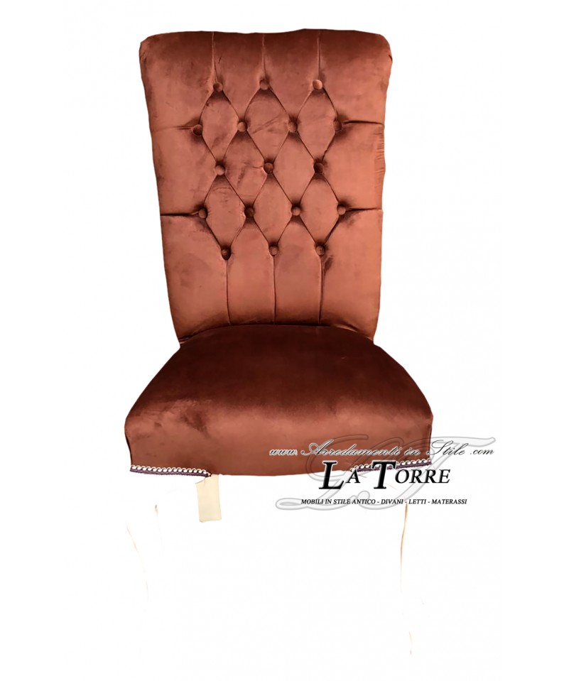 Classic contemporary chair armchair in brown velvet with white wooden legs LT3026