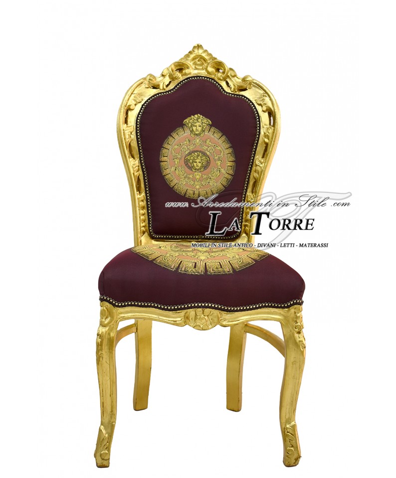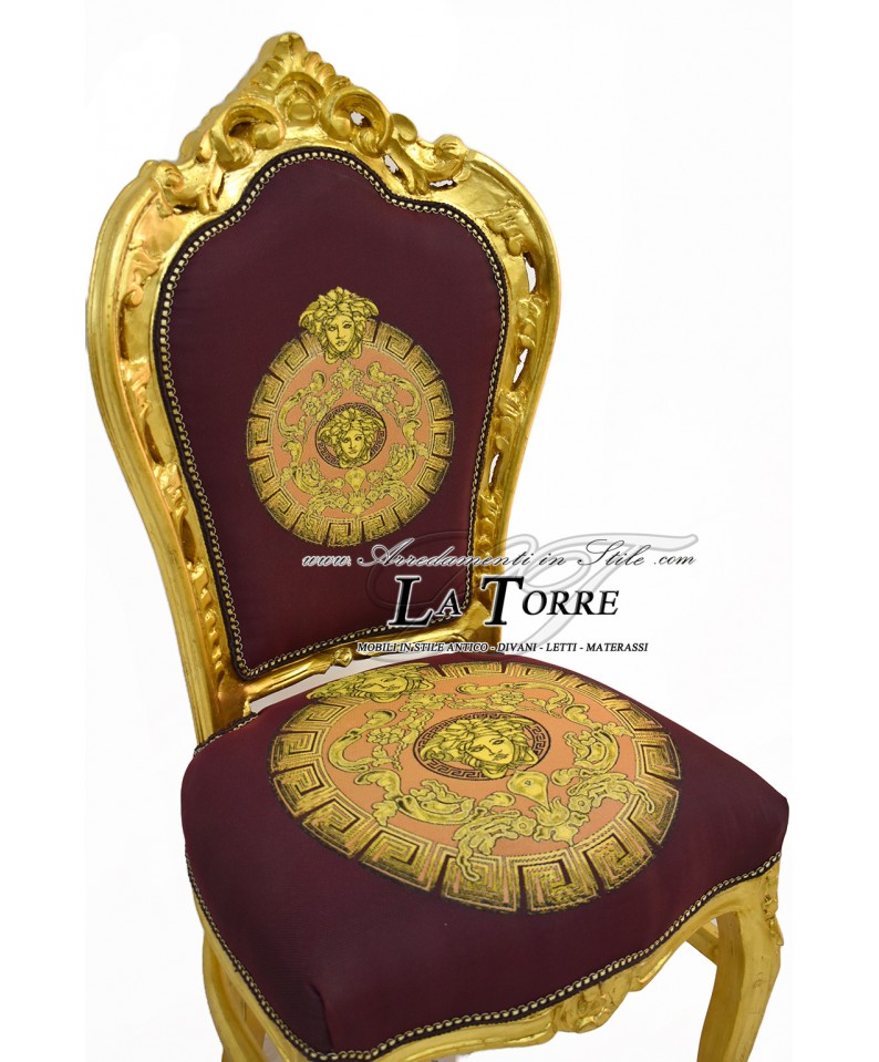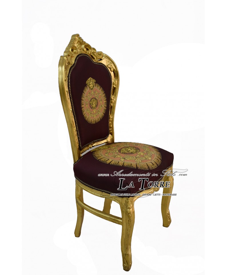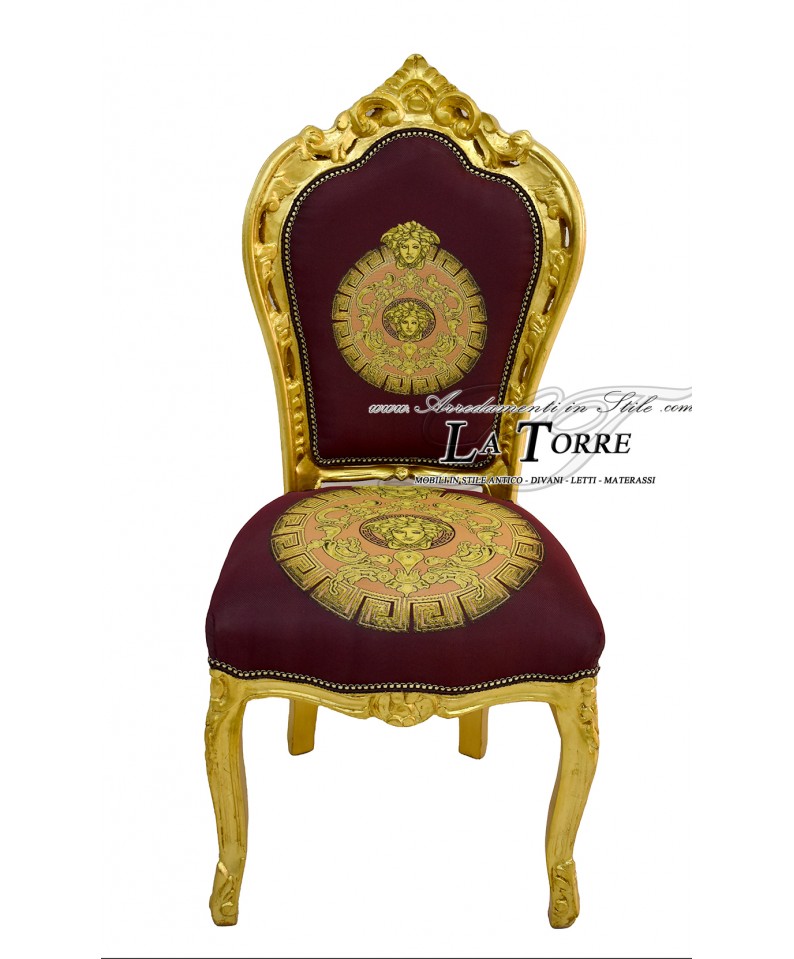 Armchair chair Still Louis XV Baroque Wood Gold fabric Bordeaux style with logo LT3023
