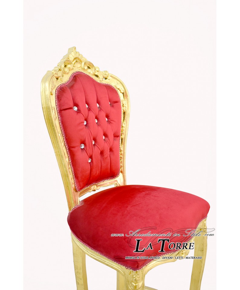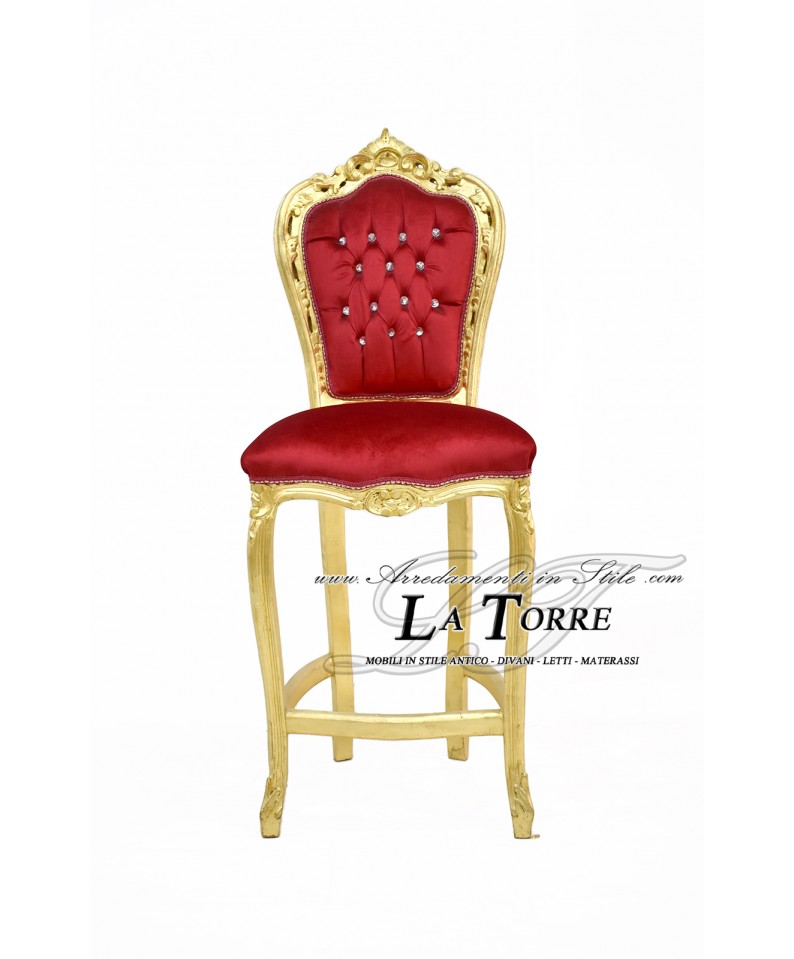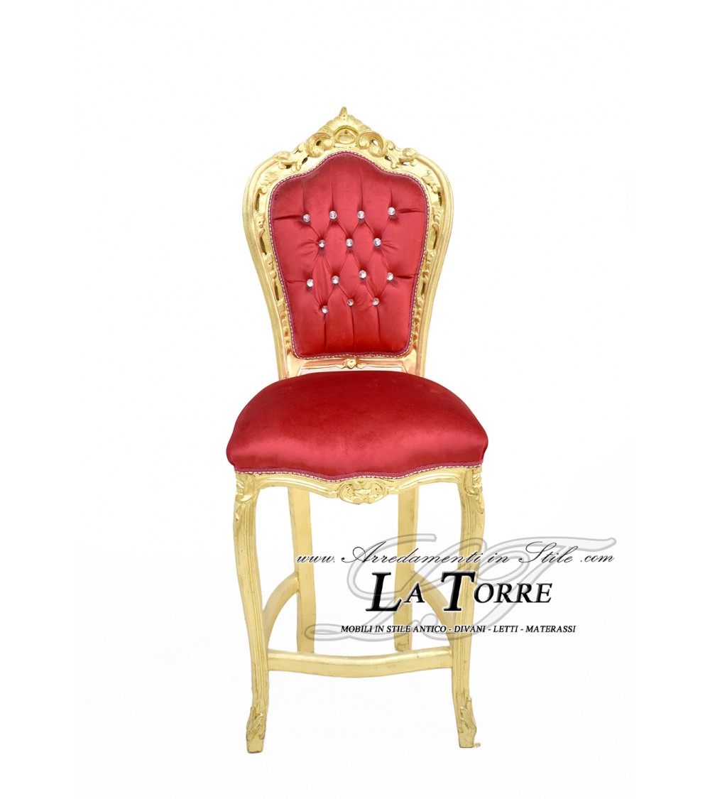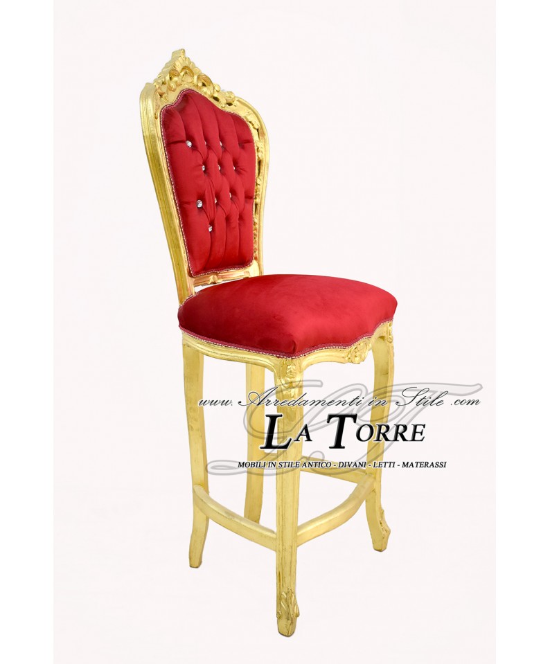 Stool High Bar Chair Armchair Still Louis XV Baroque Empire Gold Leaf Red Velvet AL1828