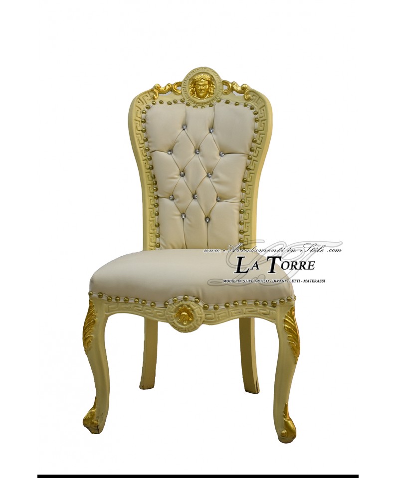 Chair Armchair Goddess Medusa Louis XV Baroque Empire ivory with gold details eco-leather LT3019