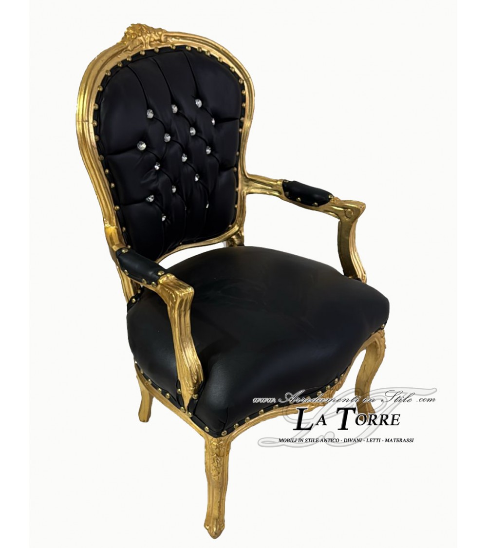 Armchair futè chair with armrests baroque style Louis XV gold black eco-leather AR1114