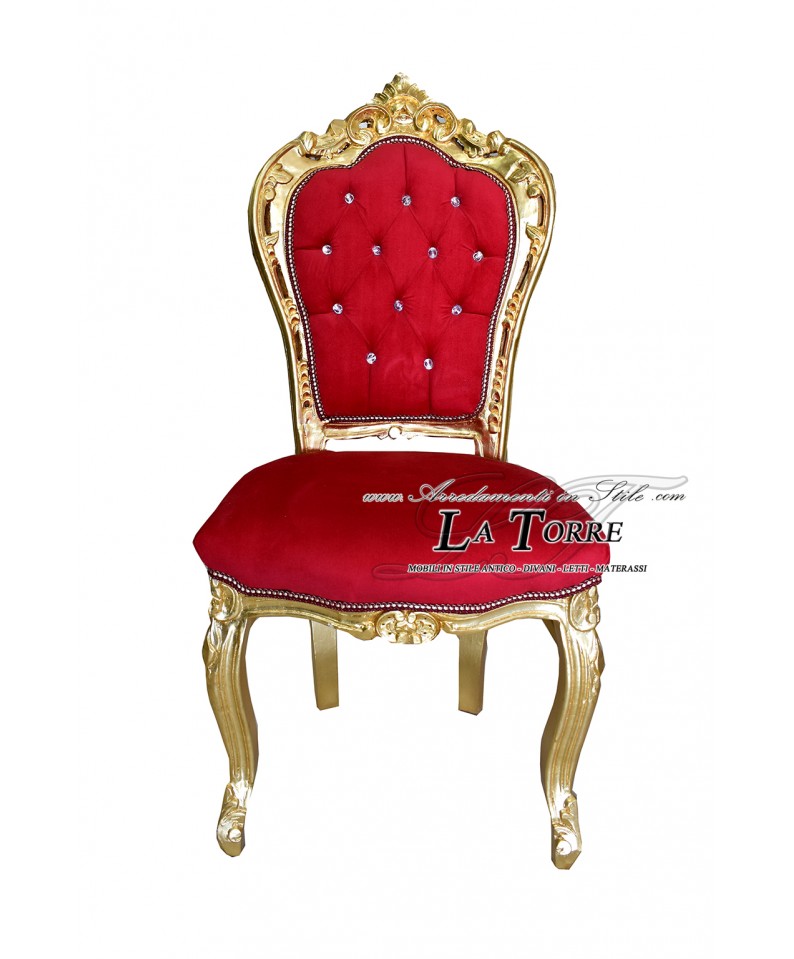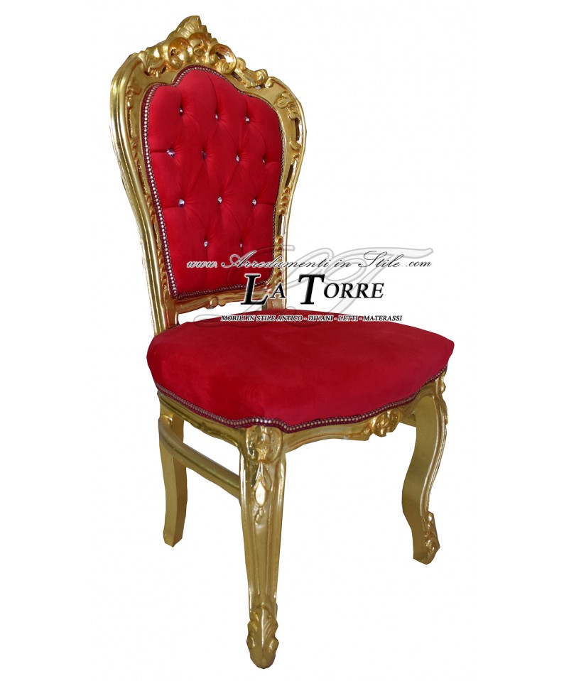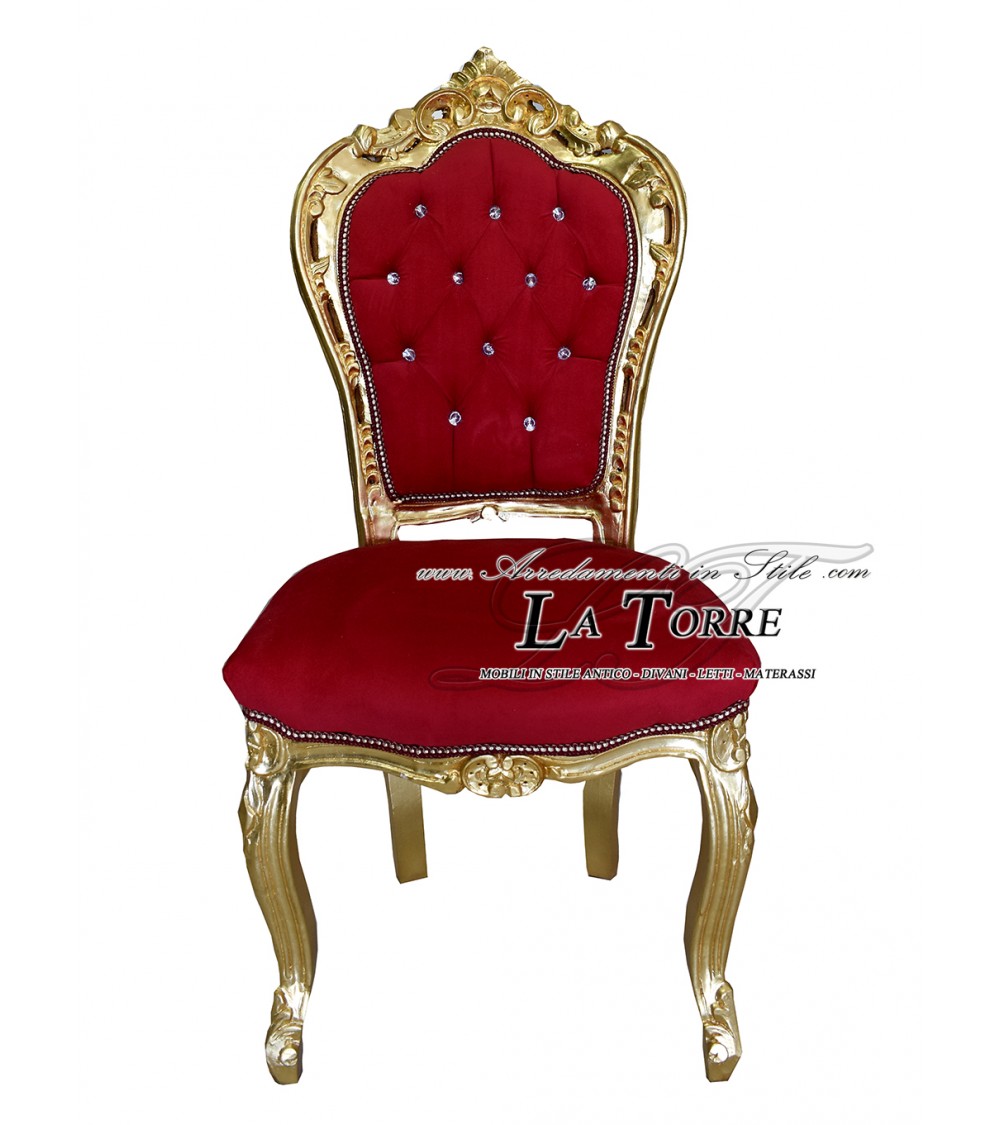 Chair armchair still Louis XV wood baroque gold velvet red swarovski AL1826
