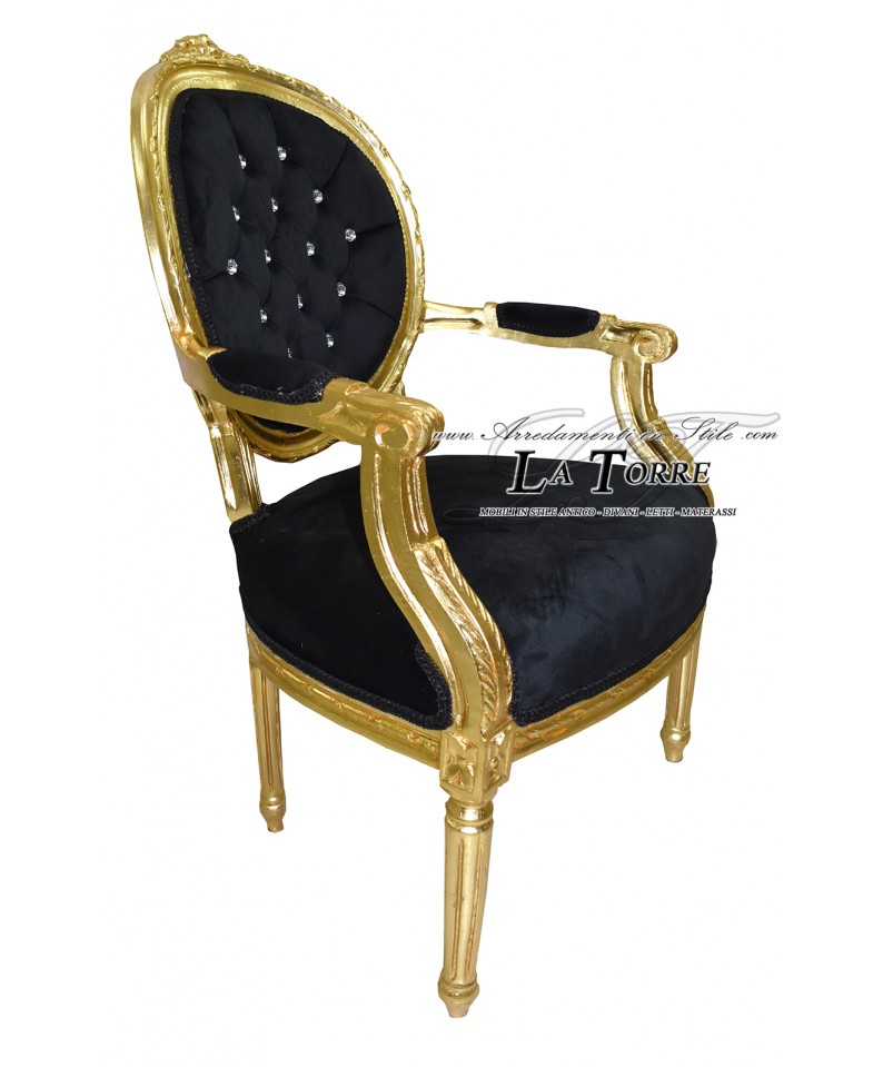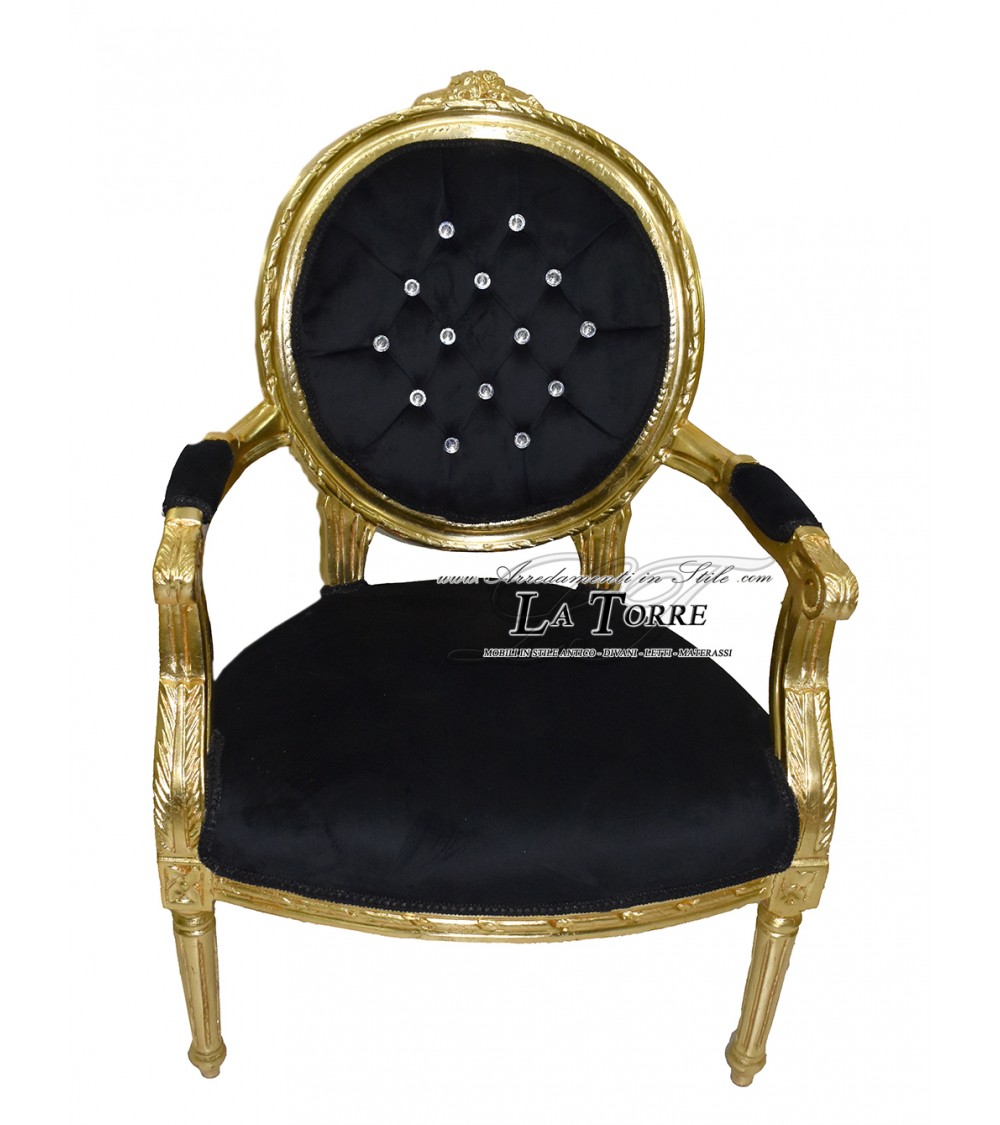 Cordelia Baroque Armchair Louis XV Chair Black Velvet Gold Swarovski Ar5457