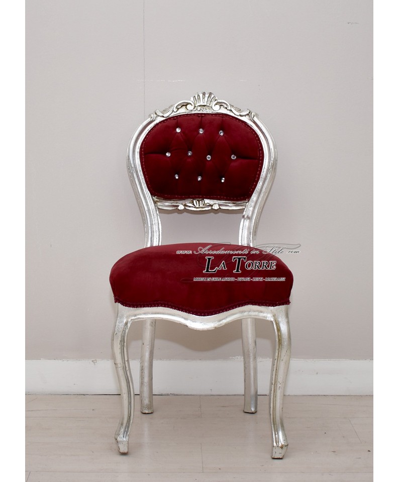 Still Louis XV Armchair with its lines that recall the Baroque and Louis XV style, features a white and gold finish. The padded seat and back are covered in damask, with the upper part of the backrest featuring a capitonné workmanship embellished with buttons that look like gems or crystals. The finely carved gold details accentuate the sinuous curves and cabriole legs, typical of these styles, giving a sumptuous and regal elegance.