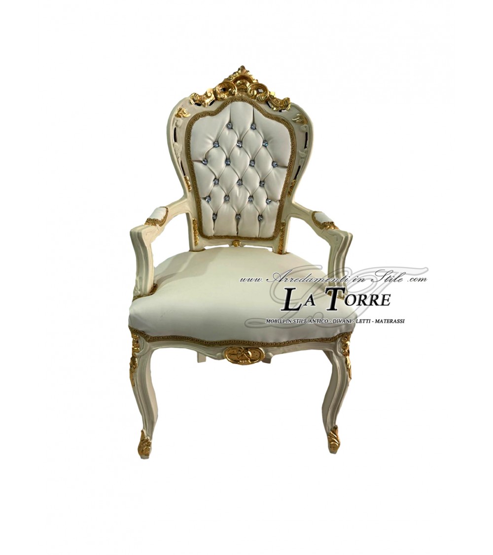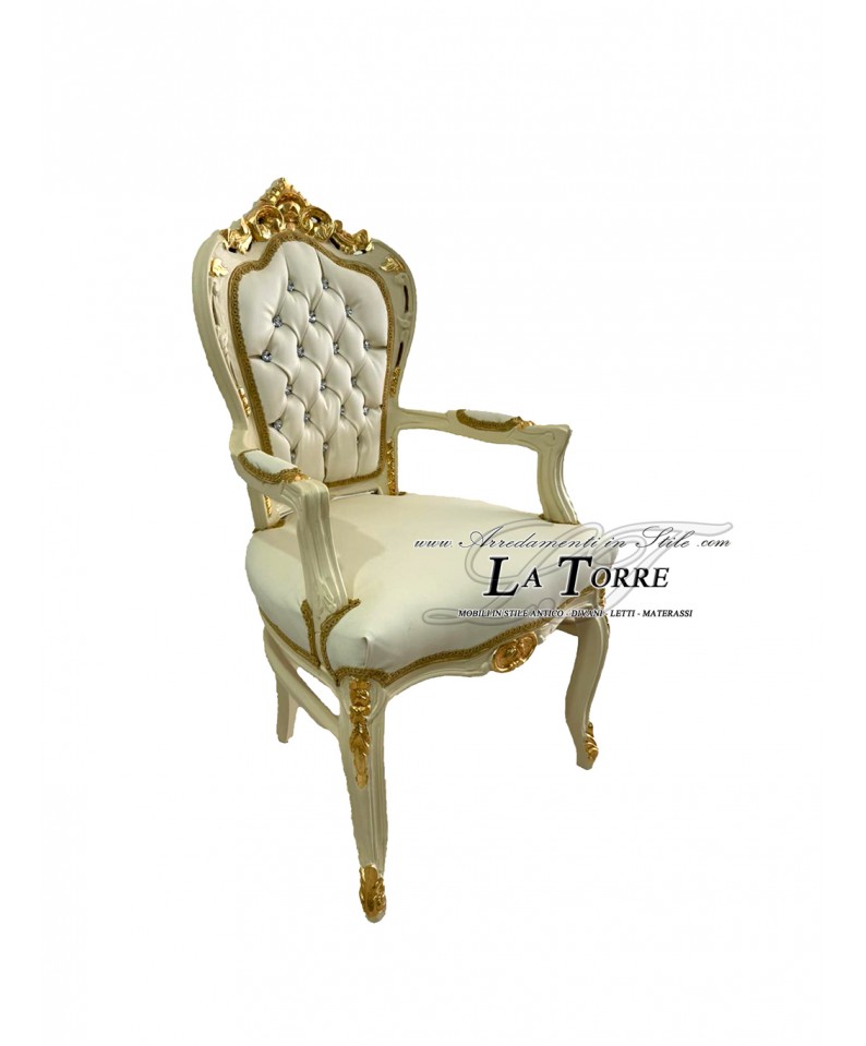 Chair Armchair Still Louis XV Baroque Empire ivory gold eco-leather ivory AL2729