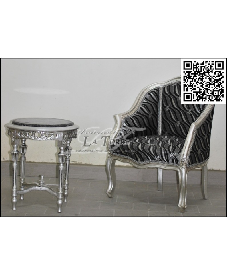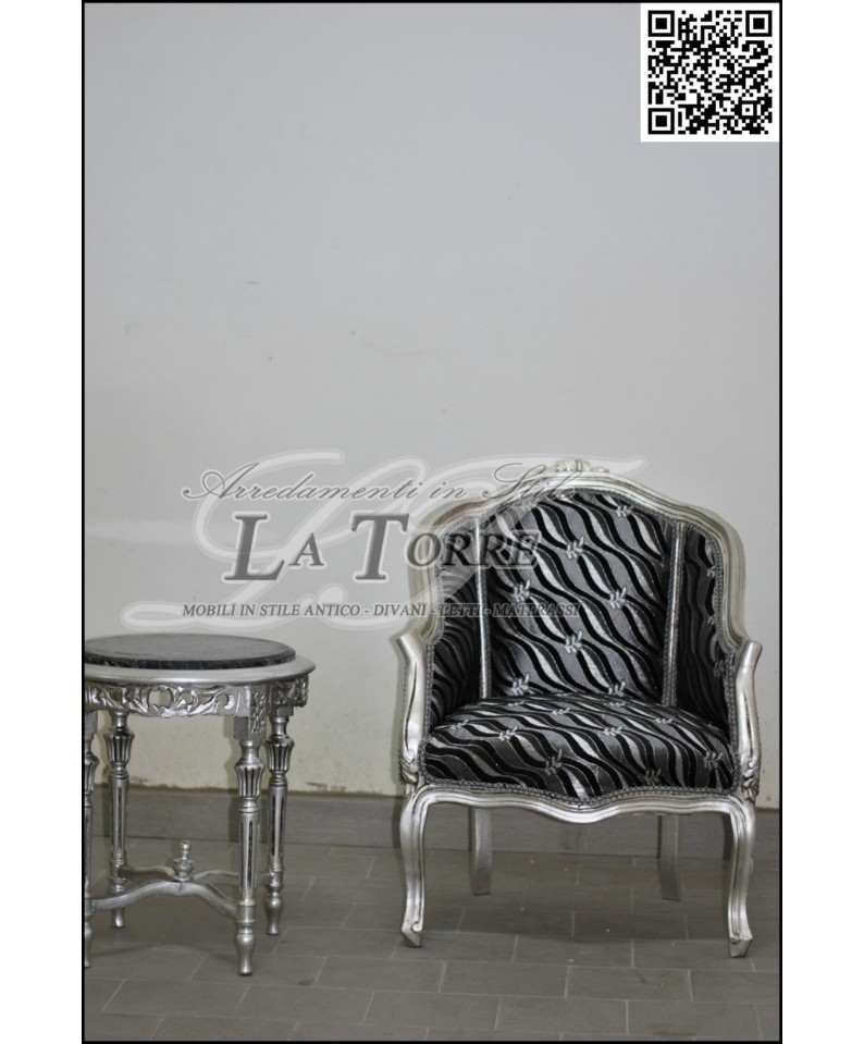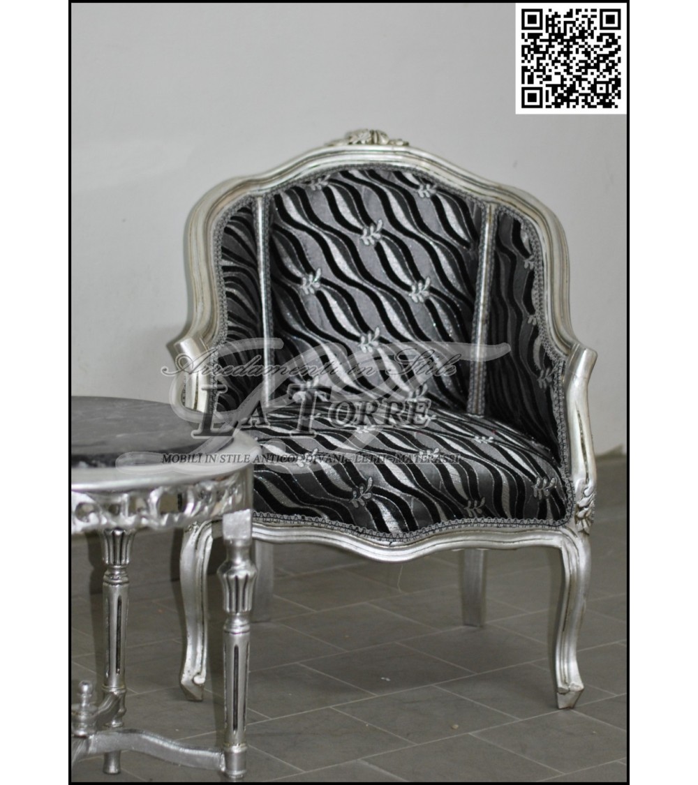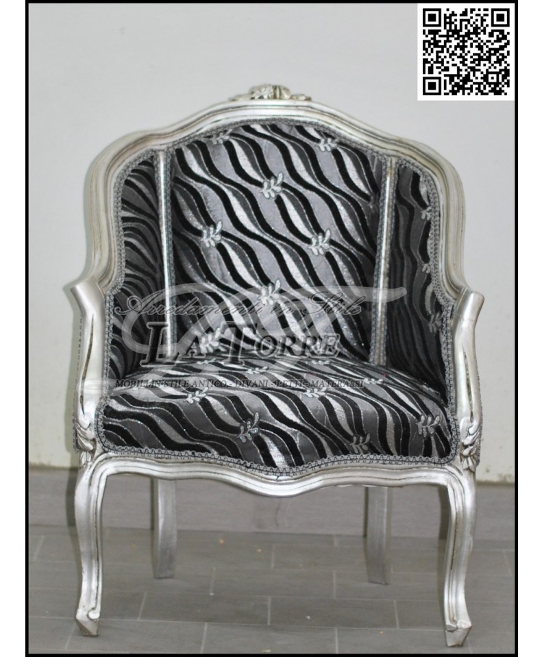 LUIGI XV bedroom armchair silver wood gray velvet AL2776