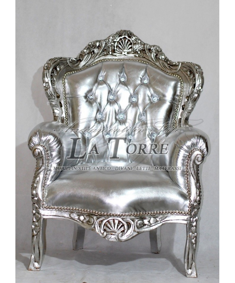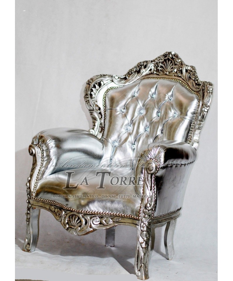 Armchair Germany Throne Baroque silver eco-leather swarovski AL4227
