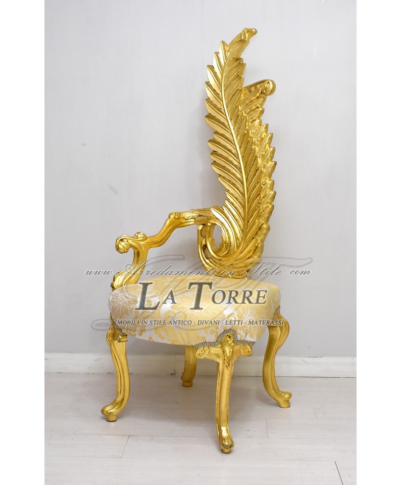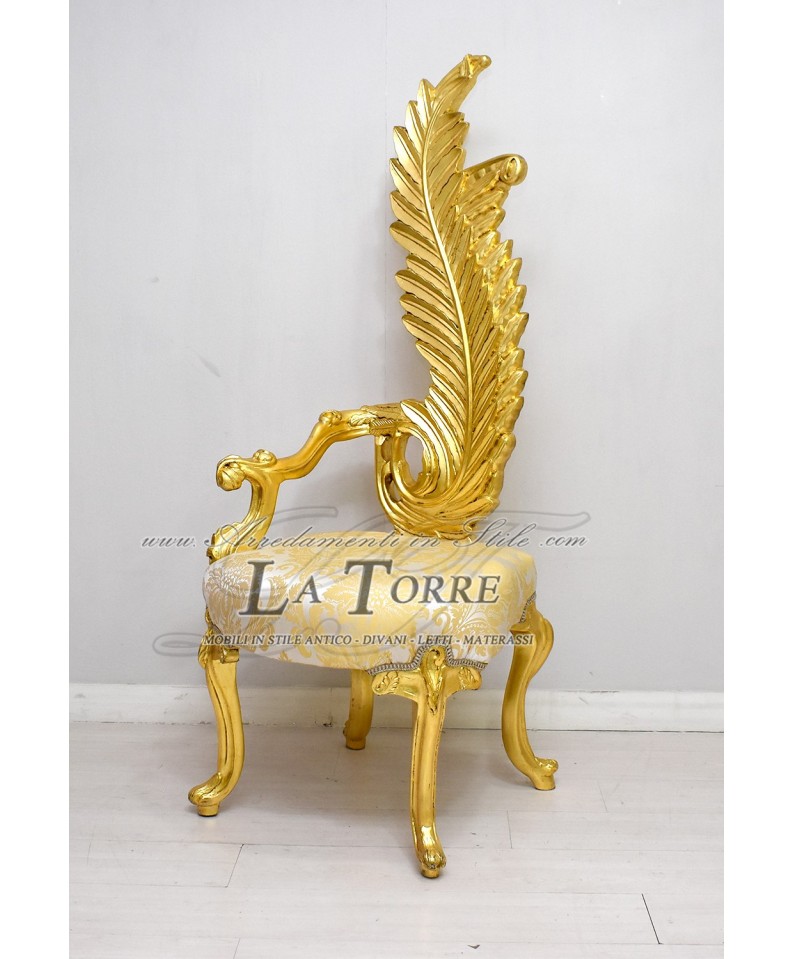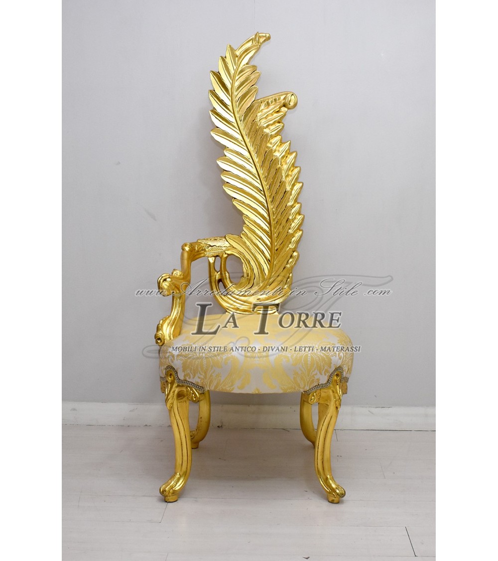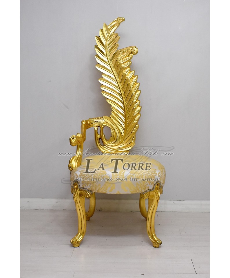 Louis XV throne armchair baroque feather chair h160 gold damask fabric AL6972