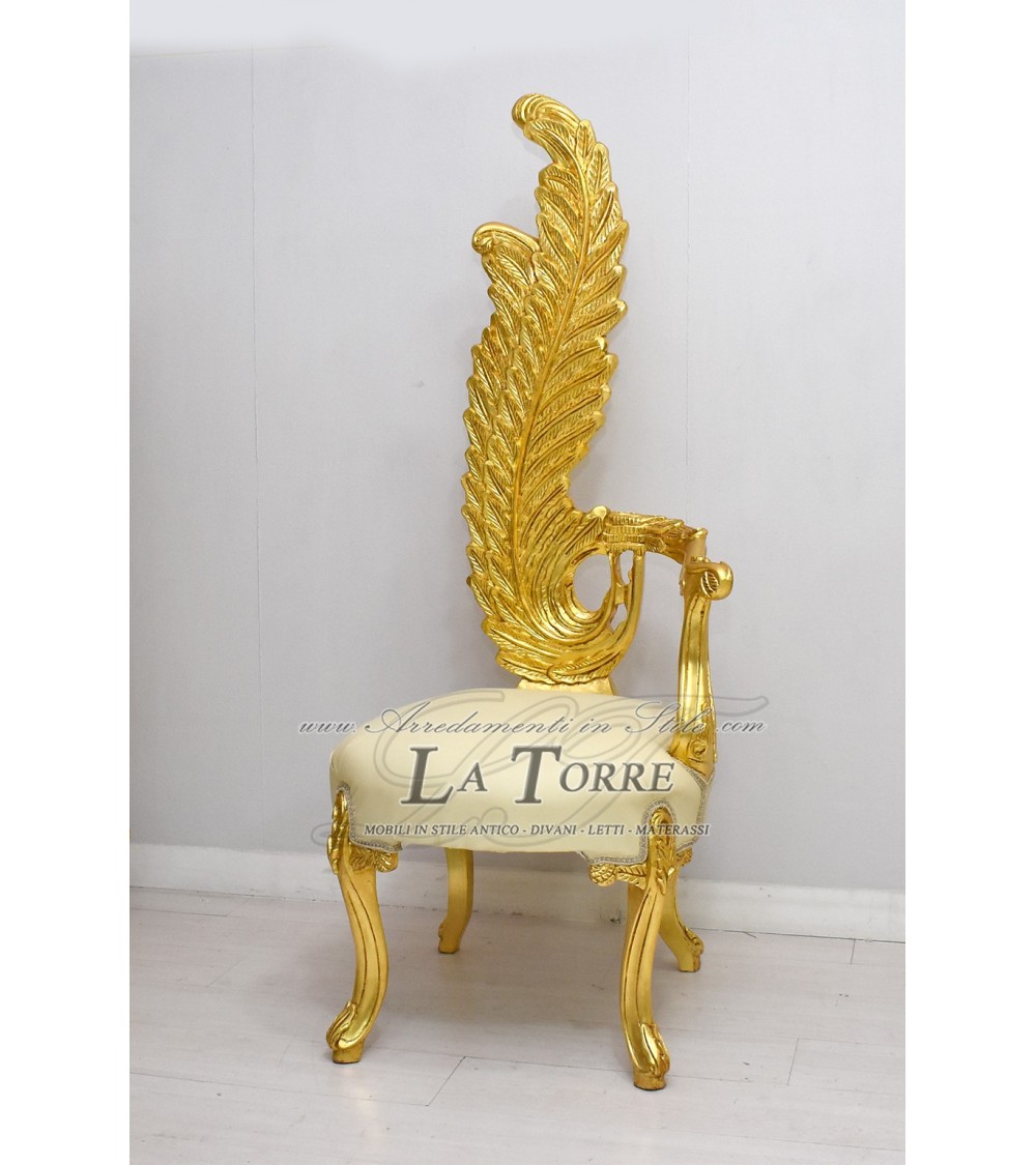 Louis XV throne armchair baroque feather chair h160 gold faux leather champagne AL6972