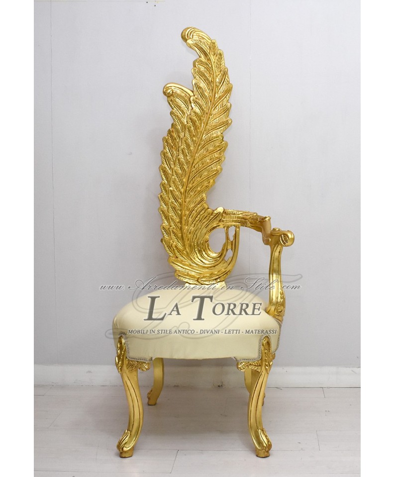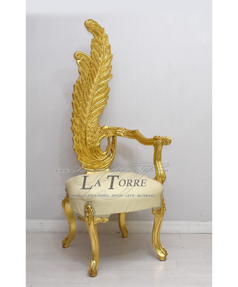 Baroque Louis XV throne armchair feather chair h160 gold champagne eco-leather AL6972