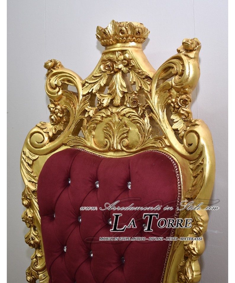 Chair Armchair Throne Baroque gold leaf burgundy velvet fabric MA1317