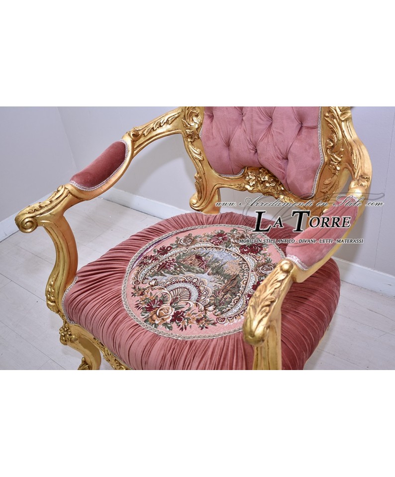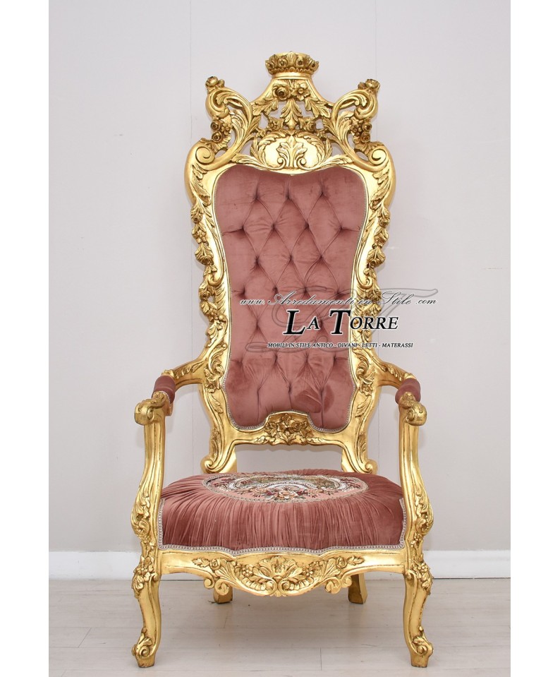 Chair Armchair Throne Baroque gold antique pink velvet fabric MA1317