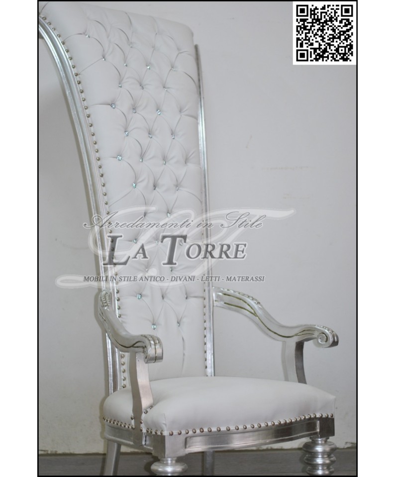 Modern baroque Louis XV throne armchair chair h 192 silver white eco-leather AL917