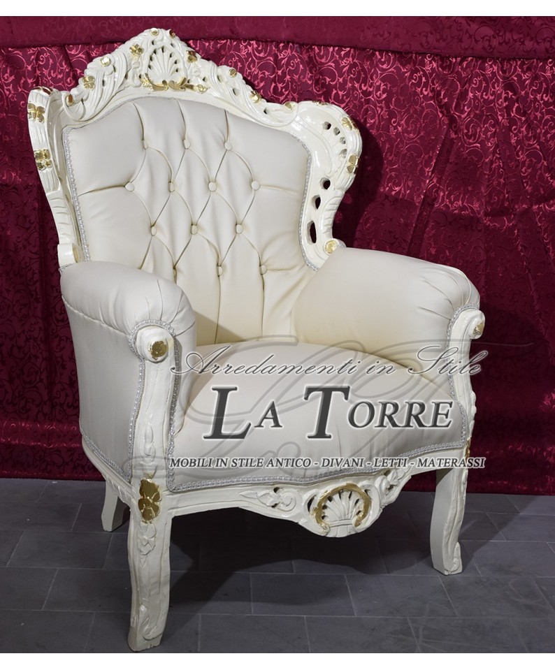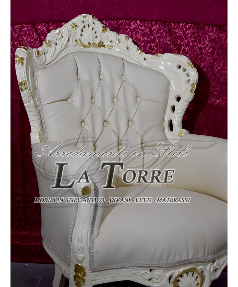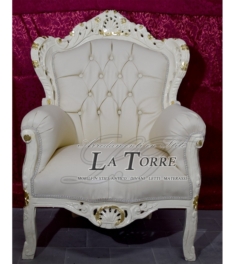 Armchair Germany Throne Baroque chair ivory and gold faux leather champagne AL4227