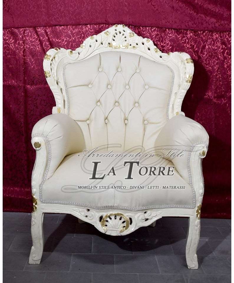 Armchair Germany Throne Baroque ivory and gold champagne eco-leather AL4227