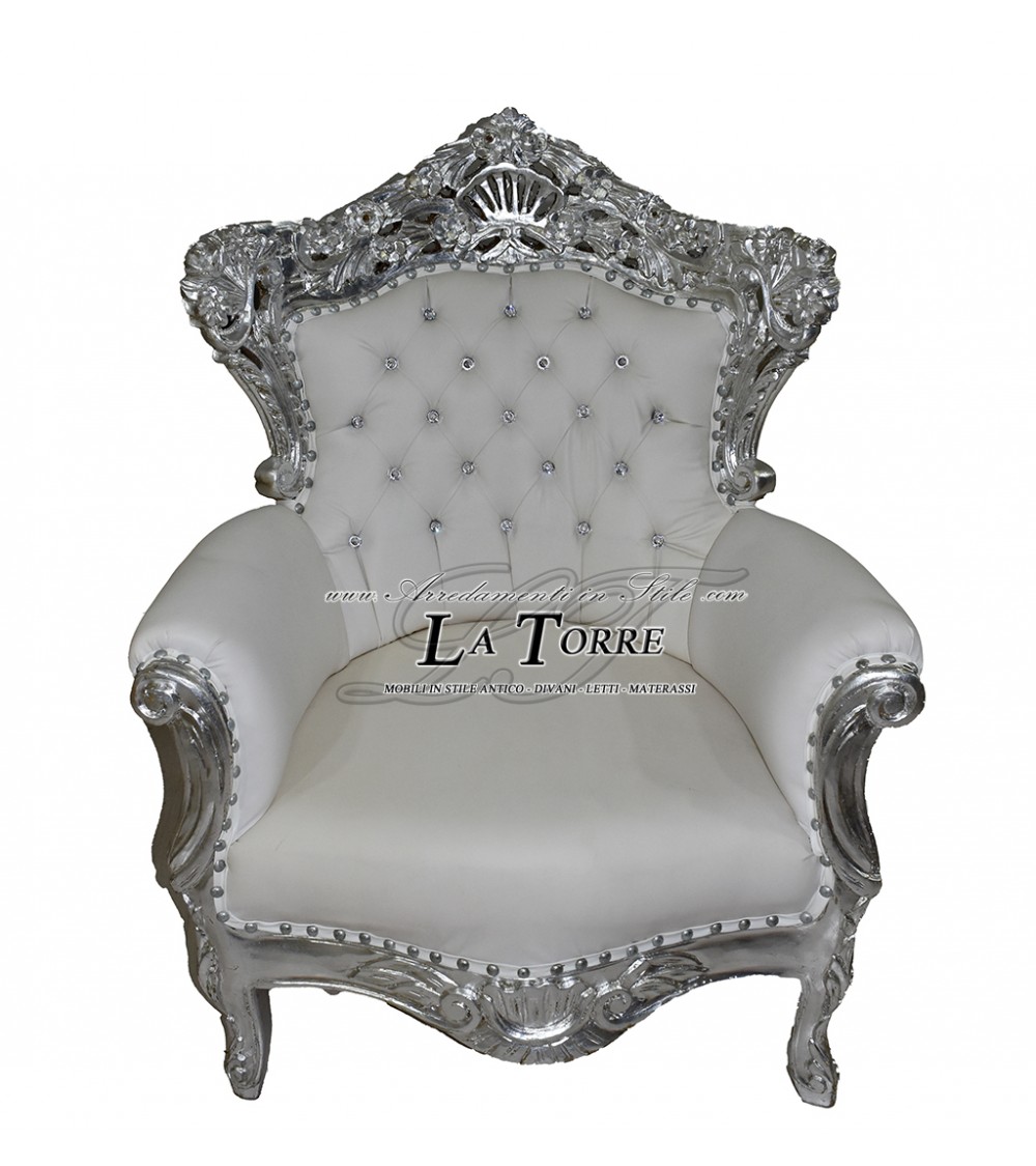 Armchair Germany Throne Baroque chair silver eco-leather white swarovski AL4227