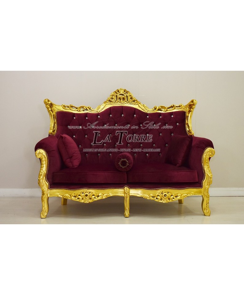 Armchair Sofa Empire Baroque wood gold bordeaux velvet Swarovski AL0031